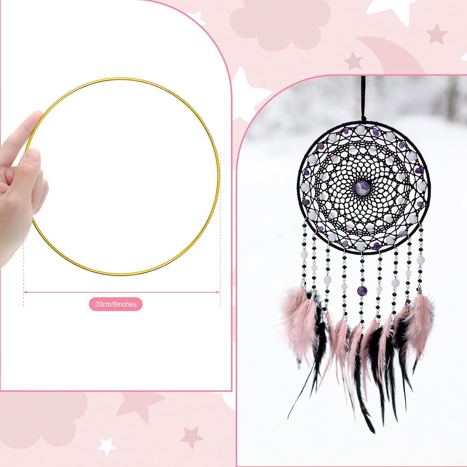 [Package included] You will get 8pcs gold metal floral hoops. Approximately 8 inches (20 centimeters) in diameter. It is a perfect size for making a dream catcher.