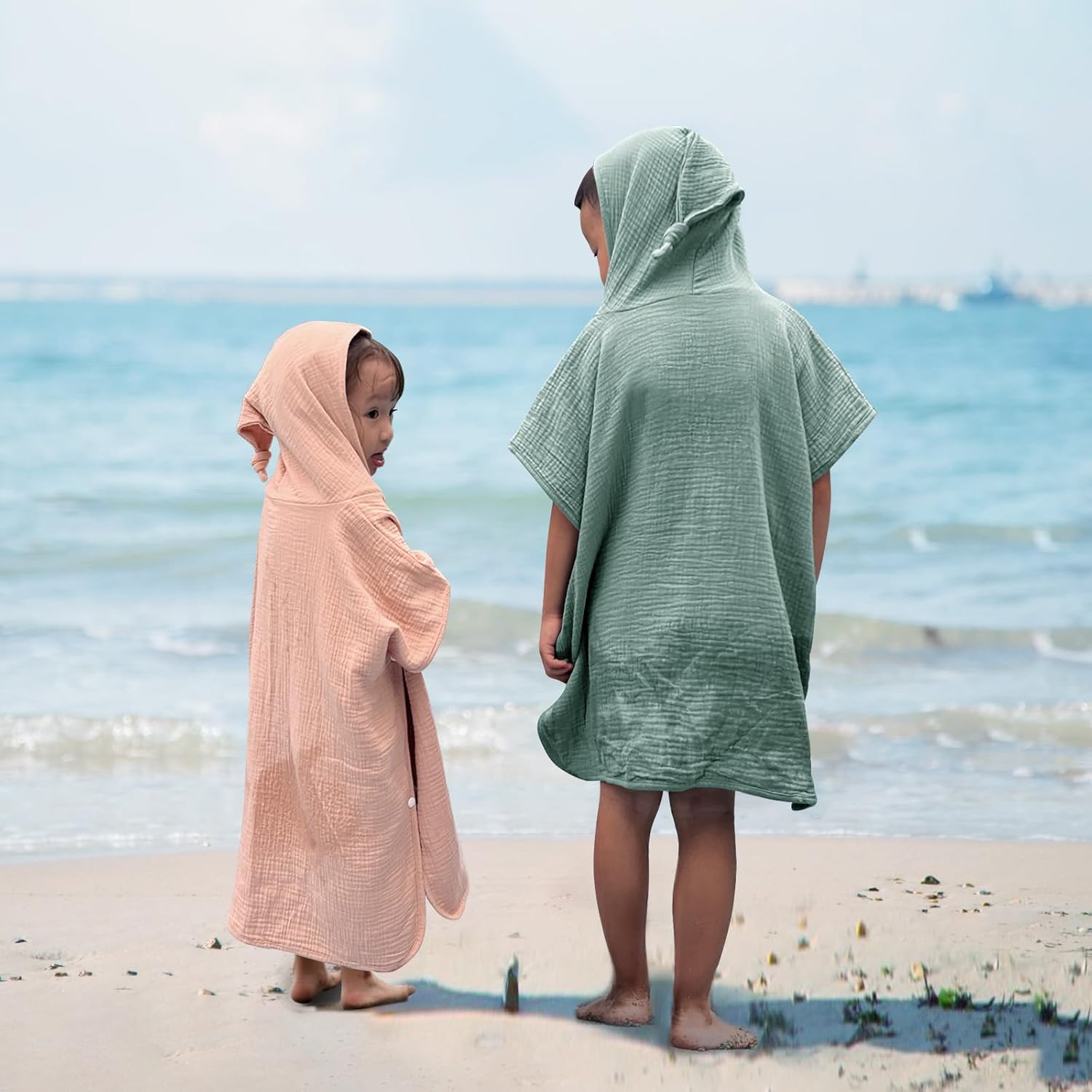 EASY CARE:The hooded poncho cover up is machine washable. Low temperature drying. It will become more comfortable and softer after washing. Please notice that the tolerance for muslin cotton material is approximately ± 1 inch.