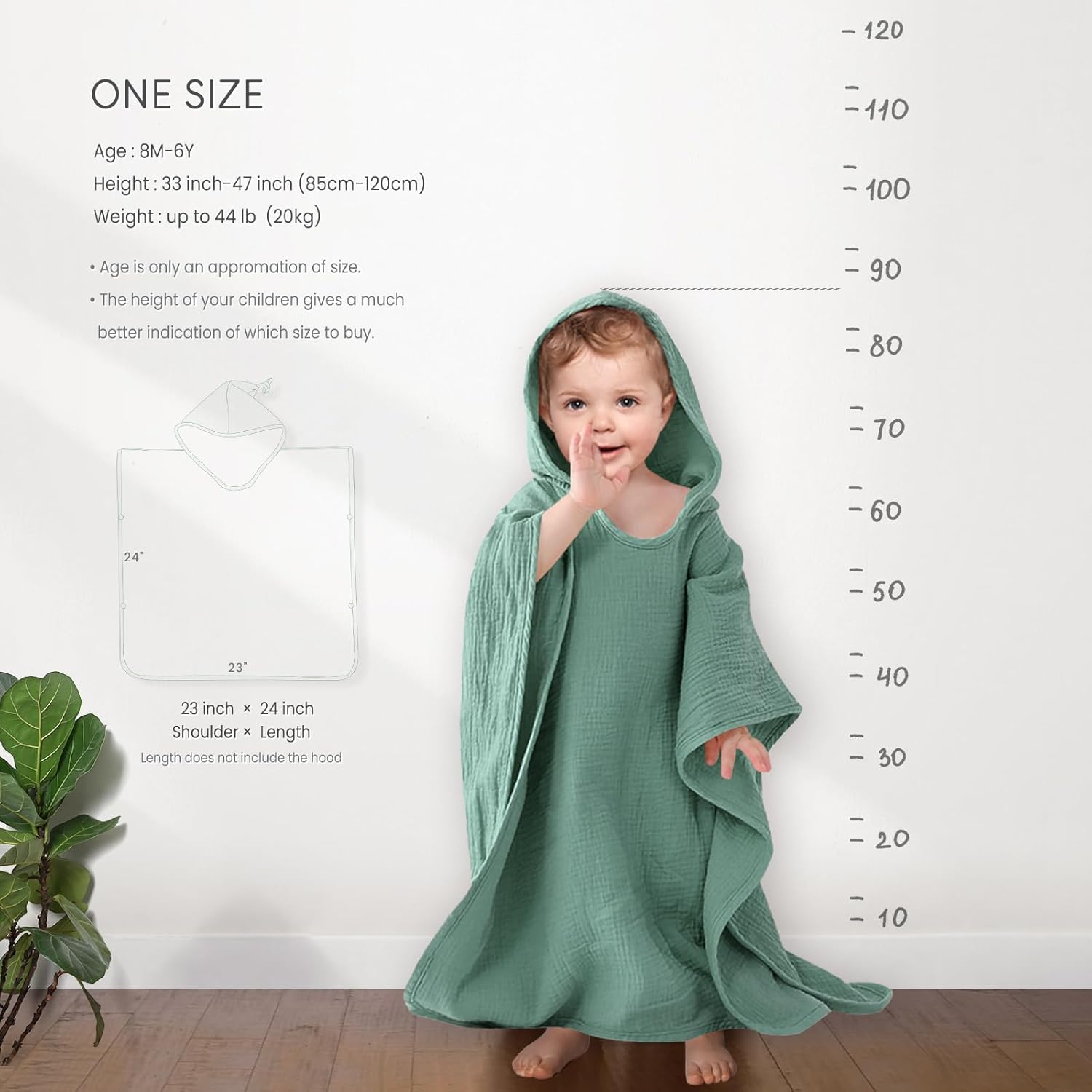 Hooded Baby Poncho Towel: Muslin Bath Poncho for Toddler – Kids Beach Poncho Towels 23″x24″ (Green)