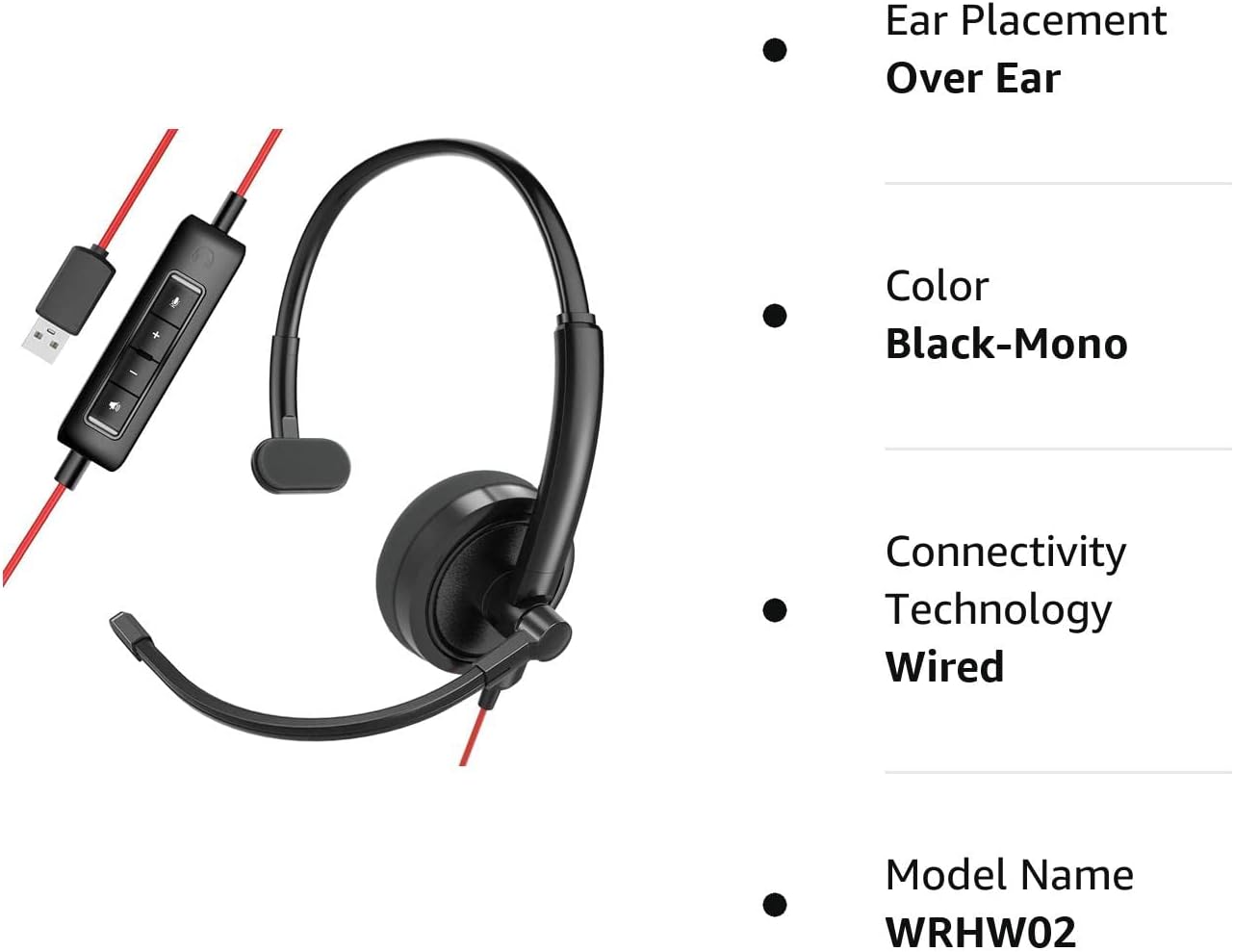 HROEENOI Premium USB Wired Headset with Noise-Cancelling Microphone, Ideal for PC, Laptop, Zoom Calls, Skype Meetings, Call Centers, and Home Office Use with in-Line Controls for Volume & Mic Mute