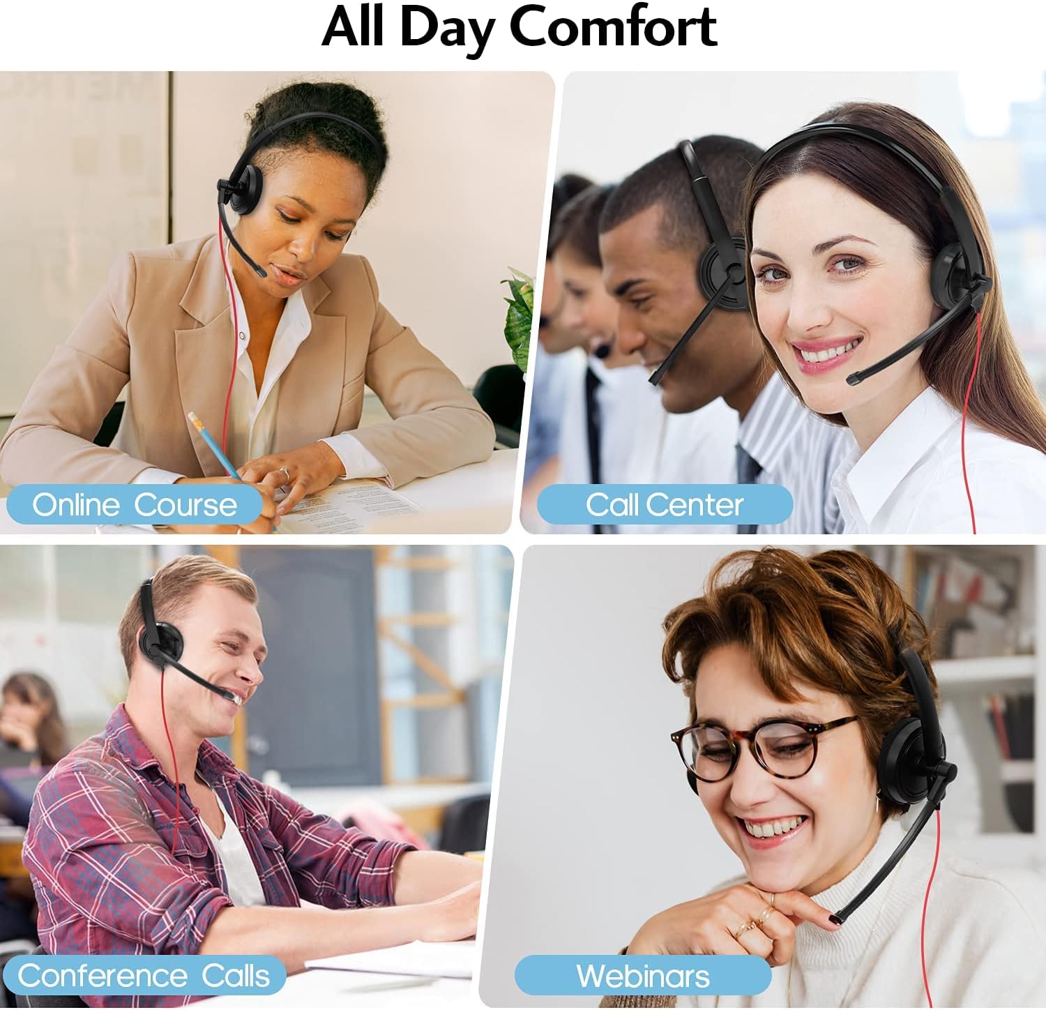 HROEENOI Premium USB Wired Headset with Noise-Cancelling Microphone, Ideal for PC, Laptop, Zoom Calls, Skype Meetings, Call Centers, and Home Office Use with in-Line Controls for Volume & Mic Mute