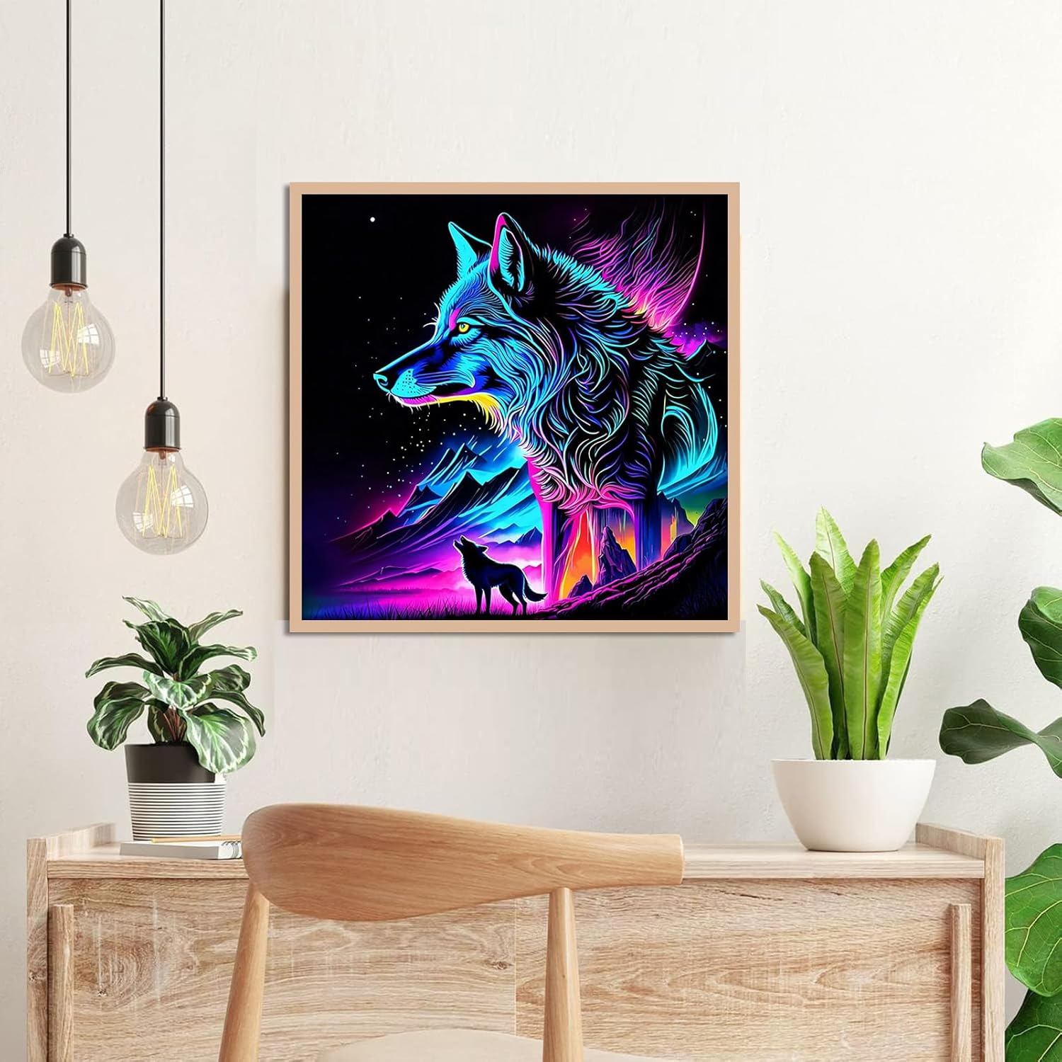 igoodom 5D Wolf Diamond Painting Kits for Adults, Animal Diamond Art Kits for Adults, Wolf Gem Art and Crafts for Gift Home Wall Decor 14×14 Inch