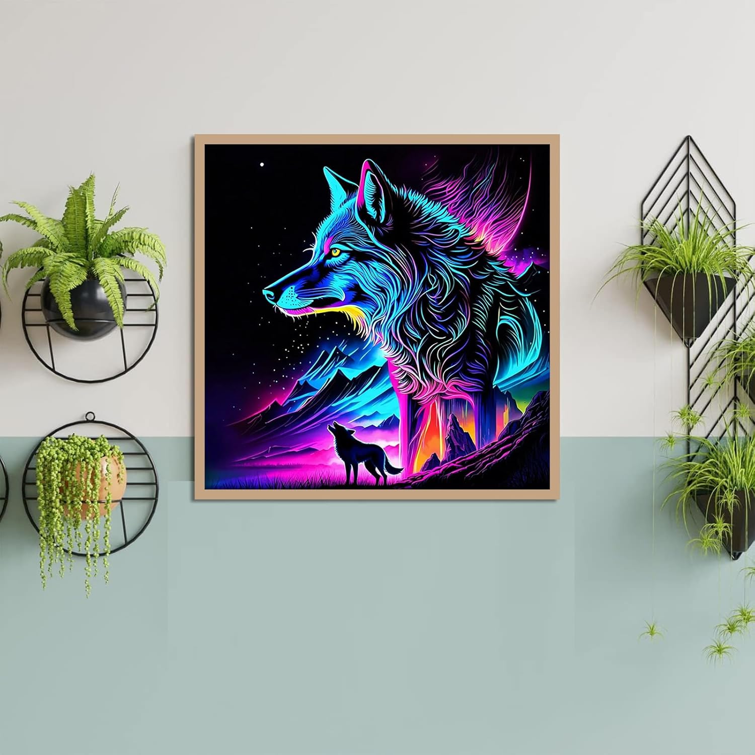 igoodom 5D Wolf Diamond Painting Kits for Adults, Animal Diamond Art Kits for Adults, Wolf Gem Art and Crafts for Gift Home Wall Decor 14×14 Inch