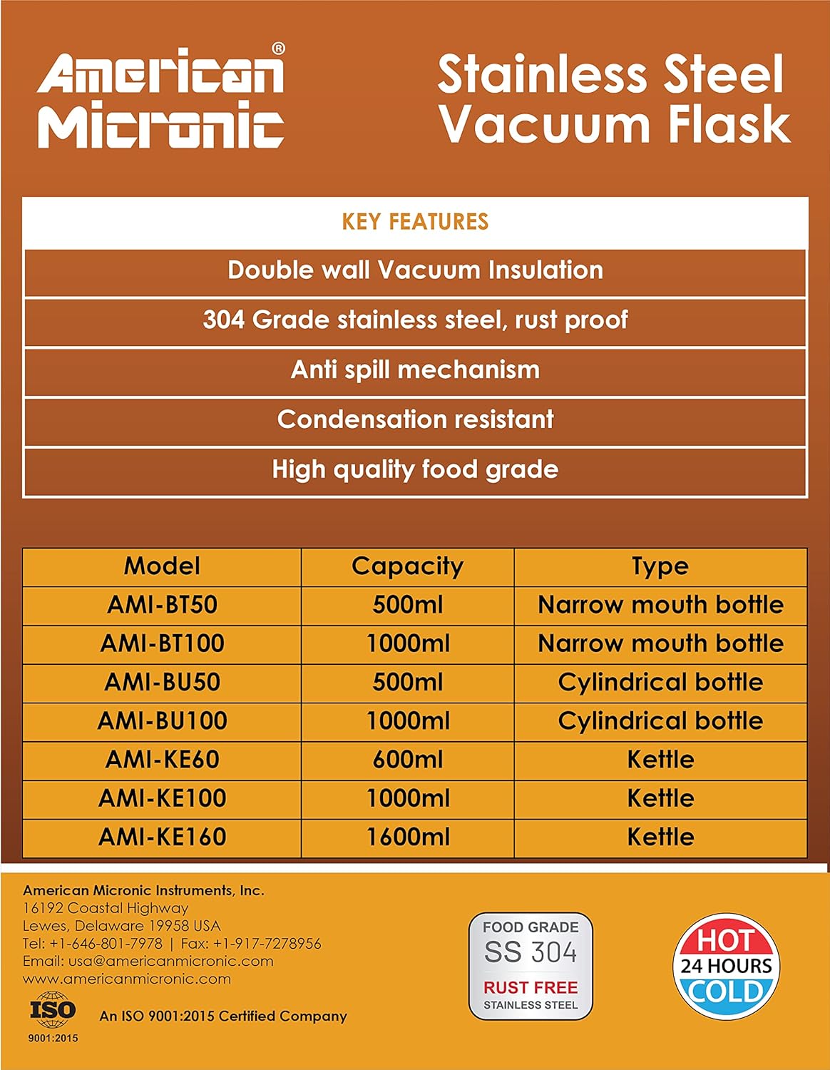 American Micronic bottles with a unique flip lid that makes pouring completely hassle-free and spill-free. The lid of this flask doubles up as a cup for drinking. It is vacuum insulated with inner and outer steel and is designed to keep your beverages hot or cold for 24 hours. When it comes to drinking fresh and clean water during travelling, it is best way to carry water from home to avoid any contamination. This bottle is made of 304 Grade stainless steel and it is durable, user-friendly and highly functional. It not only keeps the water clean but also retains temperature for up to 24 hours. So it is not only ideal for carrying water but also for hot and cold beverages. Hence carry your favourite hot beverage for a days journey during winter and simple cold water or juice during summer to refresh yourself while travelling. A unique flip lid that makes pouring completely hassle-free and spill-free, the lid of this bottle doubles up as a cup for drinking. Ideal for gifting. Its BPA Free and totally safe AMERICAN MICRONIC is an Indian-owned brand with global ambitions and footprint. Headquartered in Delaware, USA, the vision is to make an Indian-owned world-class brand of home appliances that competes with the largest multinationals in the most advanced countries ie: the USA, Europe & Middle East by offering better product quality, service delivery