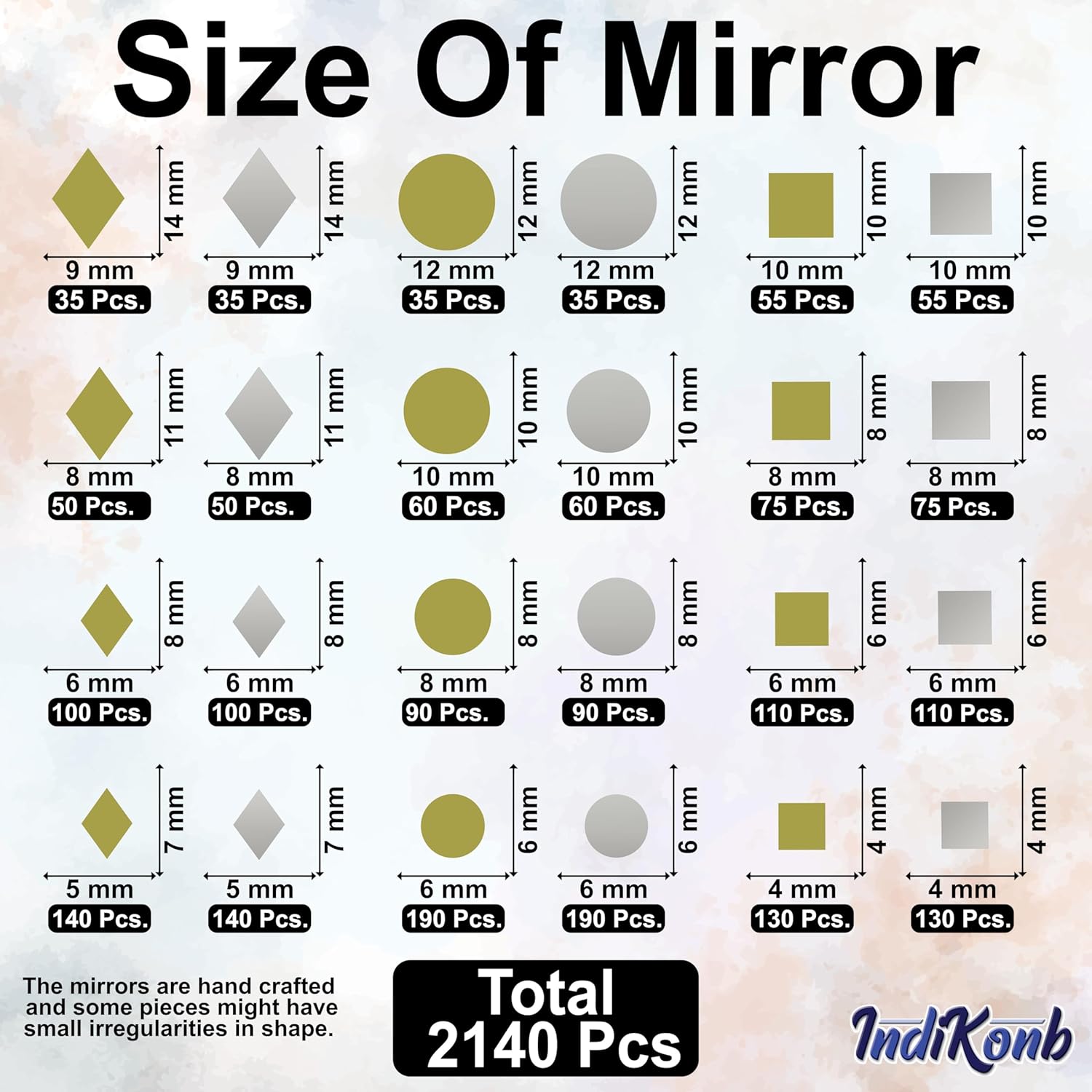 INDIKONB 2140 Mirror for Craft Work, Small Mirror Glass Pieces for Lippan Art and Craft || Craft Mirrors Cm12 ||