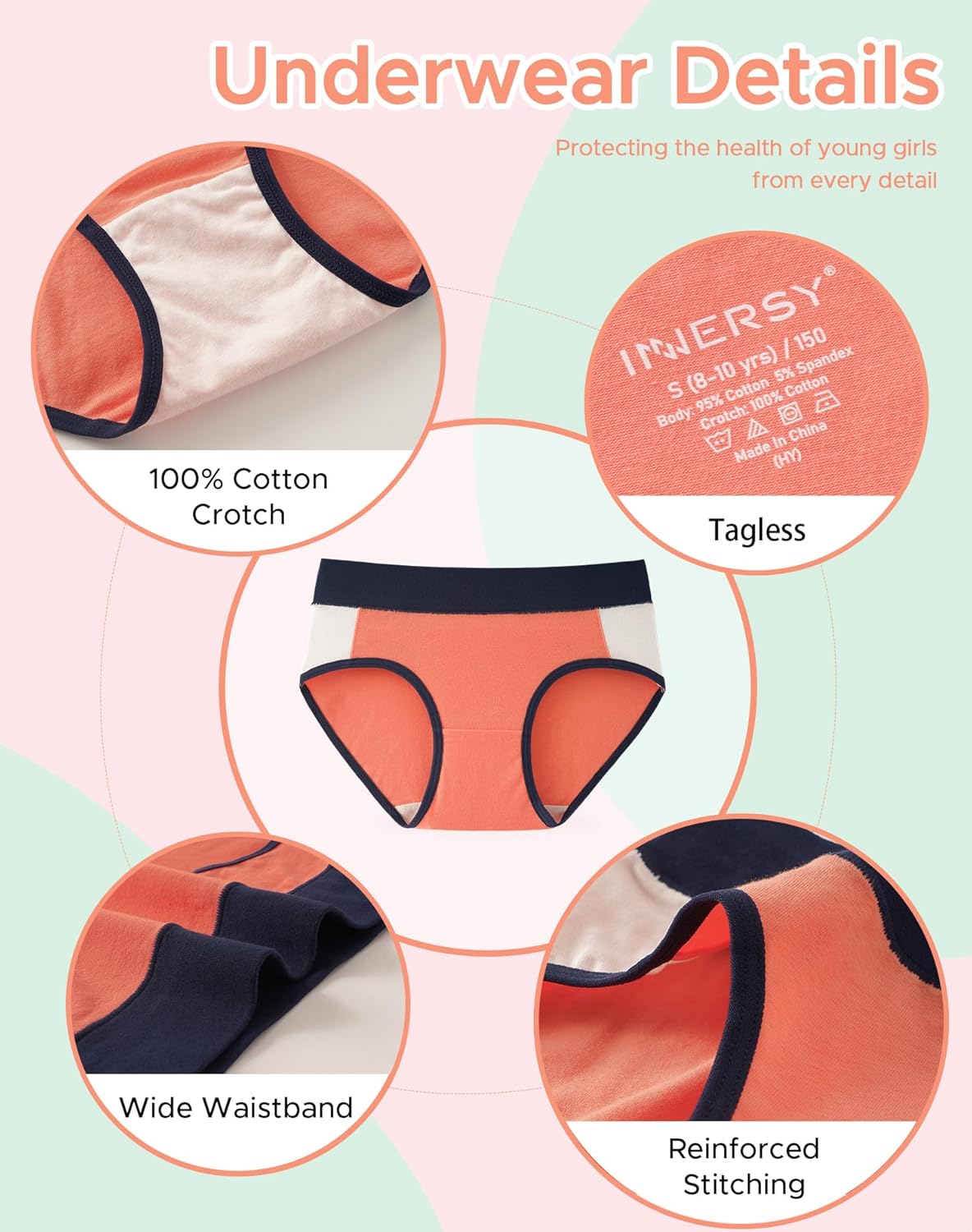 INNERSY Teen Girls Underwear Cotton Stretch Briefs Comfy Mid Rise Panties 6 Pack