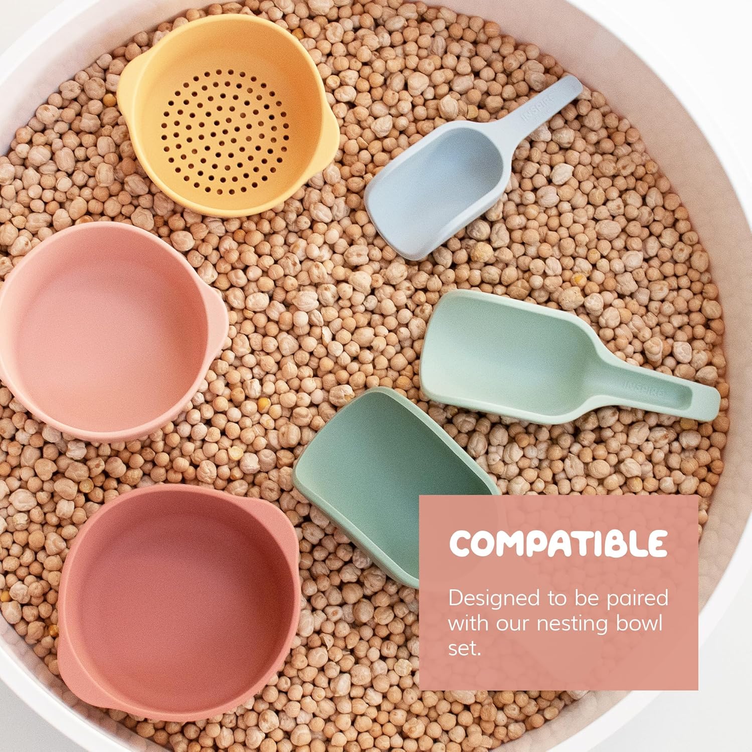 The Perfect Sensory Bin Accessories – These nesting scoops are suitable for wet and dry play, and can be stacked inside one another to allow play activities to be stored away and returned to another day. Made from tough BPA-free, 100% food grade phthalate free silicone to give you peace of mind whilst your little ones play. Dishwasher safe.