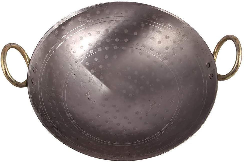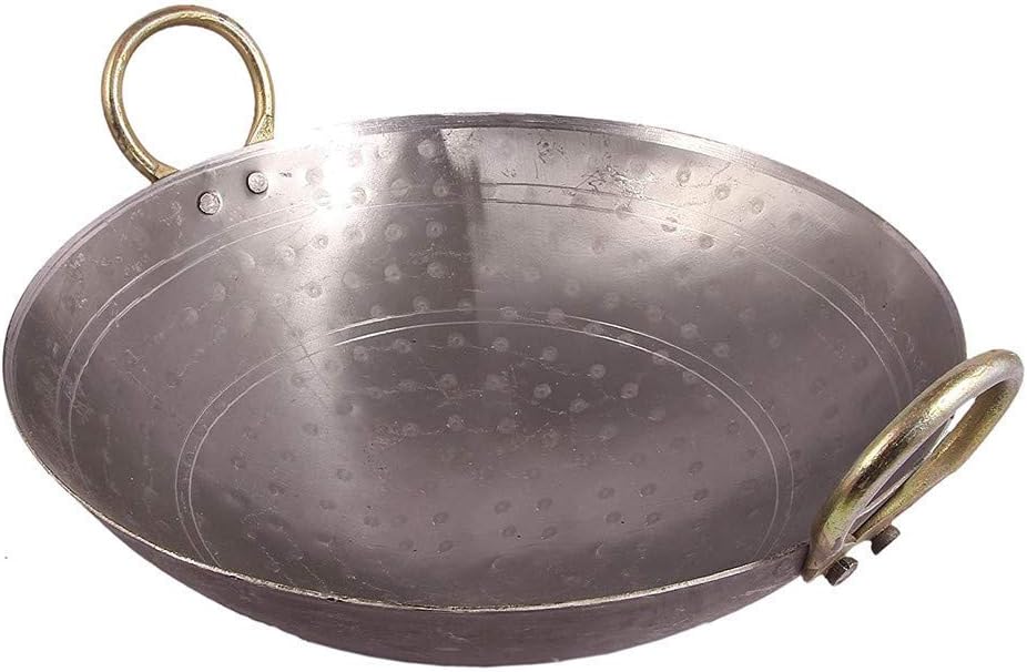 KITCHEN SHOPEE Traditional iron loha lokhand kadhai cooking pan. Heavy iron kadhai with handles is suitable for making paneer, dal tadka, pakodas, vegetables and numerous other non-veg cuisines like chicken and mutton dishes. Solidly made does not allow chipping, breakage or food contamination like that from non-stick or aluminium pans. Traditional hand-made, pre- treated kadhai cooking pan without any chemical coating. Good for roasting, sauting, grilling, broiling, shallow frying in a small quantity of oil or deep-frying in plenty of oil. Easy to clean. How to use: wash well before use. Keep it dry after usage. After use, wash it well with warm soap, lemon, water or dish washing powder.