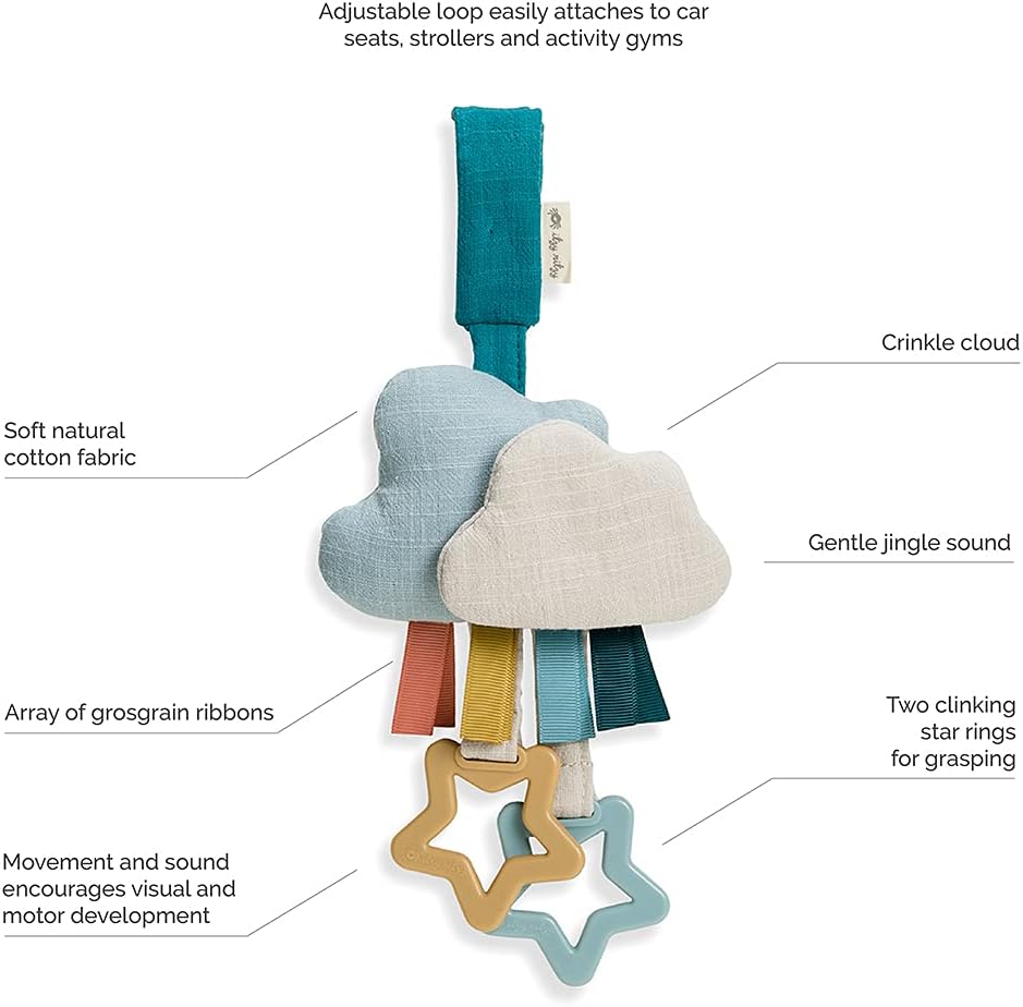 Itzy Ritzy Jingle Travel Toy for Stroller, Car Seat or Activity Gym – Baby Hanging Toy Features Jingle Sound, Clinking Rings & Adjustable Attachment Loop (Cloud)