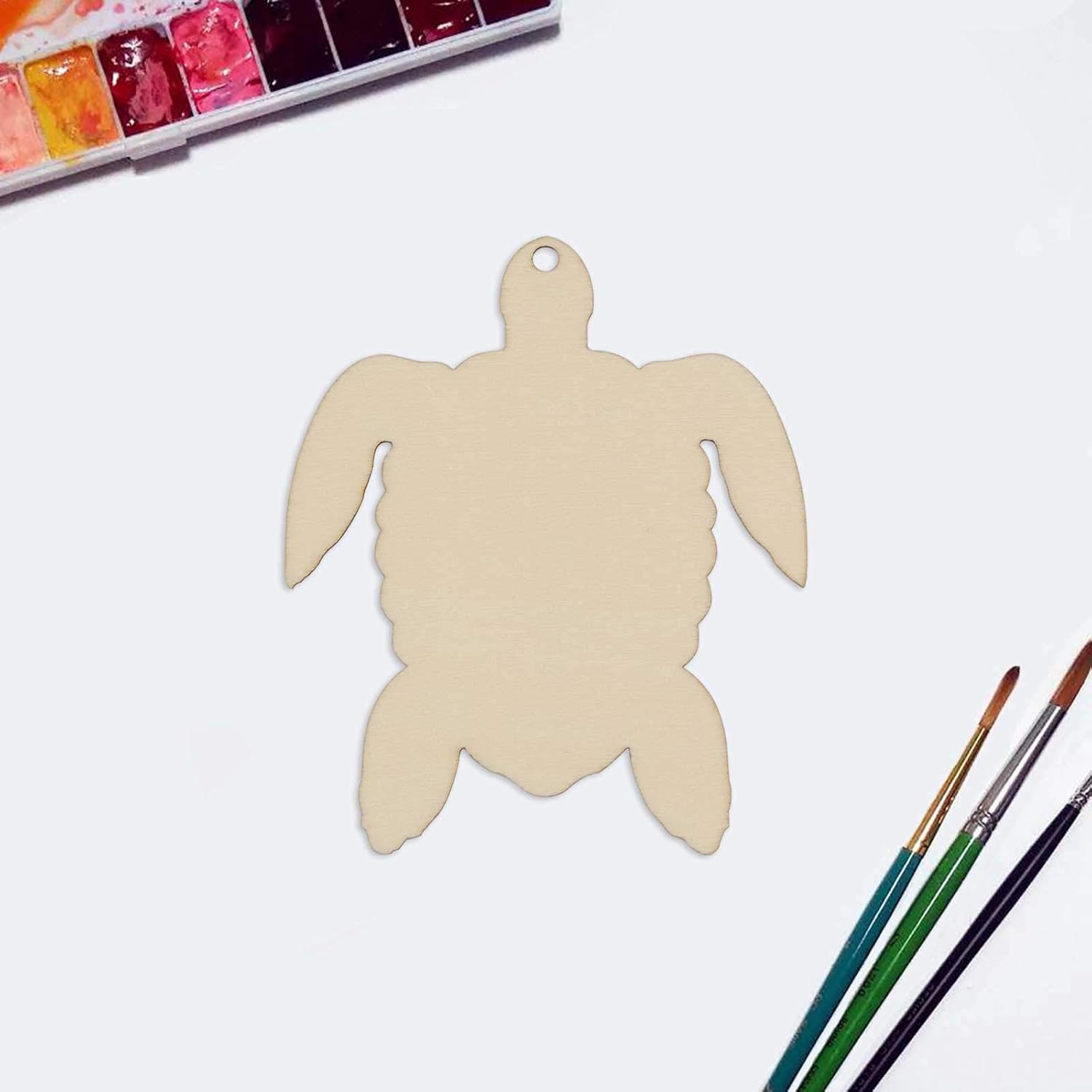 JANOU 20pcs Sea Turtle Shape Unfinished Wood Cutouts DIY Crafts Blank Hanging Gift Tags Ornaments with Ropes for Summer Ocean Sea Theme Party Decoration, 3.94×3.3 in