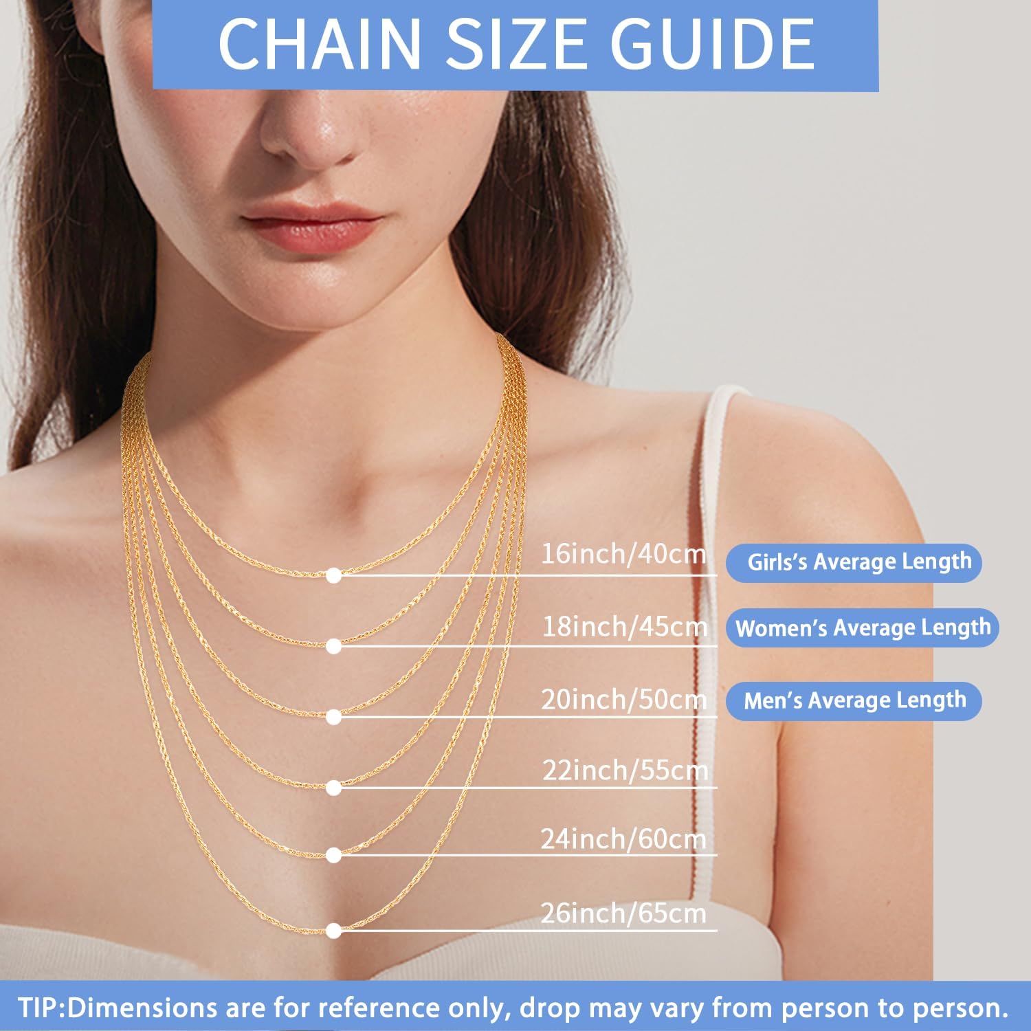 Tip: 16 inches is perfect for most girls/boys, 18 inches may fit small necks(Women’s Average Length), and 20 inches is the typical size for most people(Men’s Average Length).Take a rope, wrap it around your neck, adjust it to the length you like, then mark the ends of the rope, measure the length between the ends, and choose a length longer than this as your size choice. (You can choose the most suitable necklace according to your gender, weight and wearing position.)