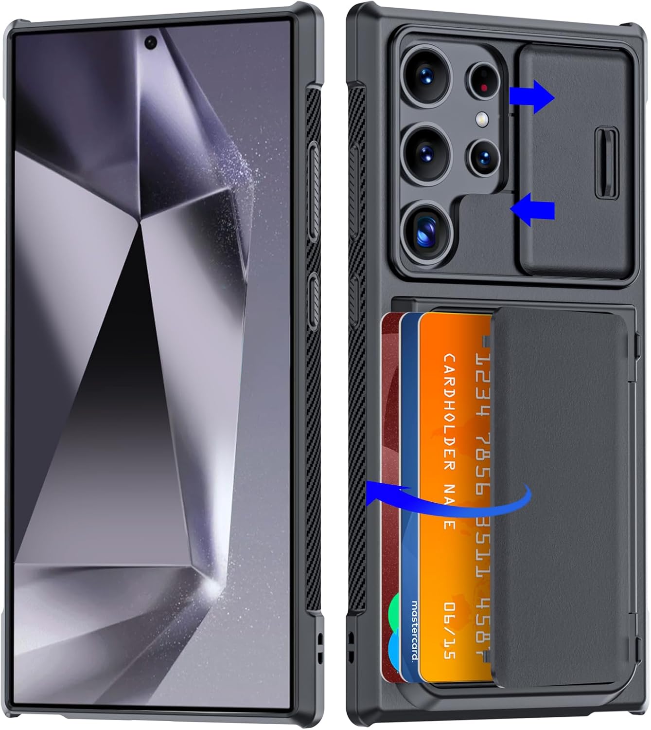 for Samsung Galaxy S24 Ultra Case, Galaxy S24 Ultra Wallet Case with Card Holder & Sliding Privacy Camera Cover & Kickstand, TPU Rugged Shockproof Wallet Case for Galaxy S24 Ultra 6.8Inch