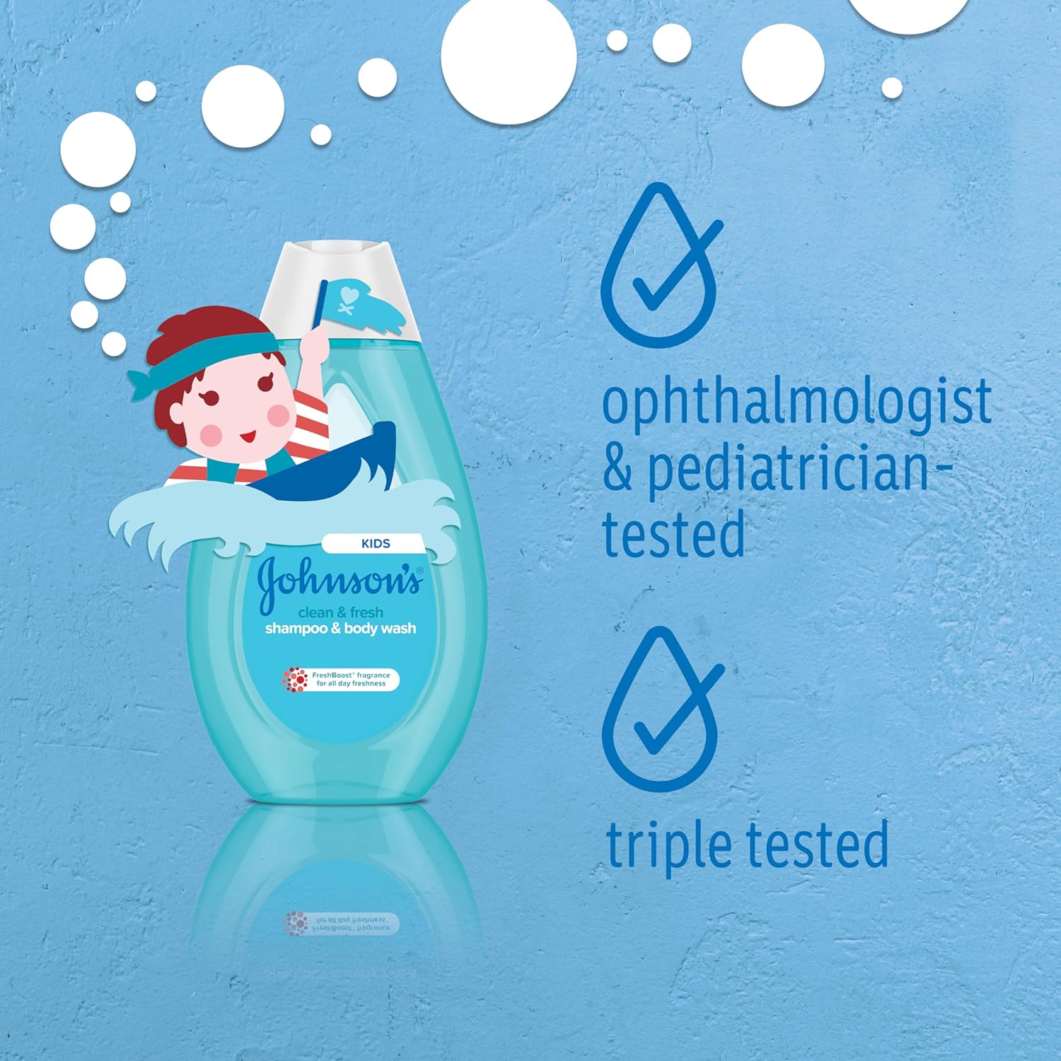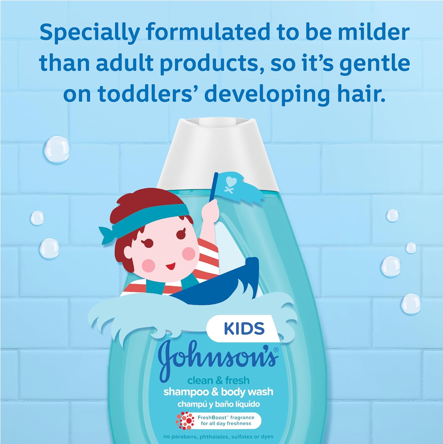 This two-in-one scented shampoo & bath wash for kids leaves hair smelling fresh all day with FreshBoost fragrance