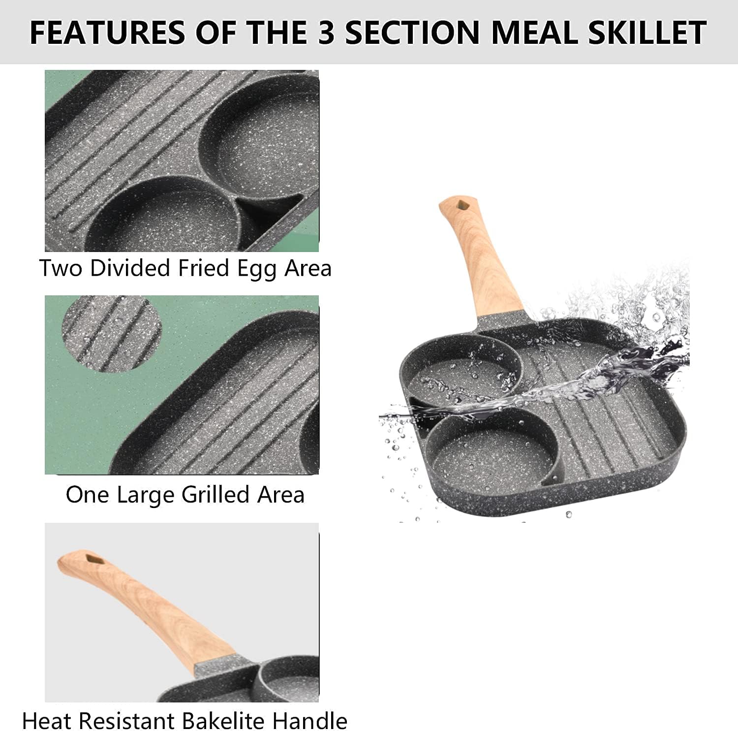 Original price was: $78.98.$59.98Current price is: $59.98.JUSTUP Nonstick Egg Frying Pan, 3-in-1 Nonstick Pan Divided Grill Frying Pan, Heat Resistant Handle 3 Section Skillet Mini Pancake Pan, Cooking Pan for Breakfast, Egg, Bacon and Burgers, 7.3 in
