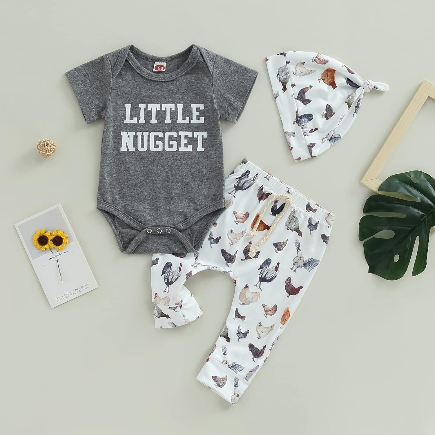 Newborn Baby Boy Girl Clothes Cute Romper Bodysuit and Pants with Hat Western/Ocean 3 Piece Coming Home Outfits