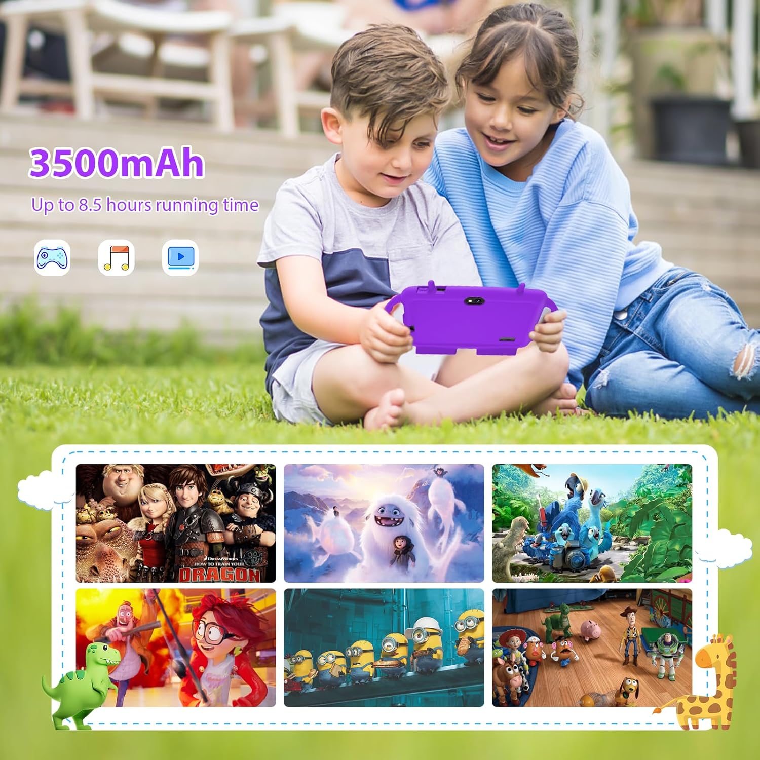 【Dual Cameras and Battery Upgrade】Whether taking selfies or shooting videos, the kids tablet’s cameras allow kids to explore and capture the world around them. The large battery capacity ensures that our tablet for kids can run for longer periods of time, suitable for traveling.