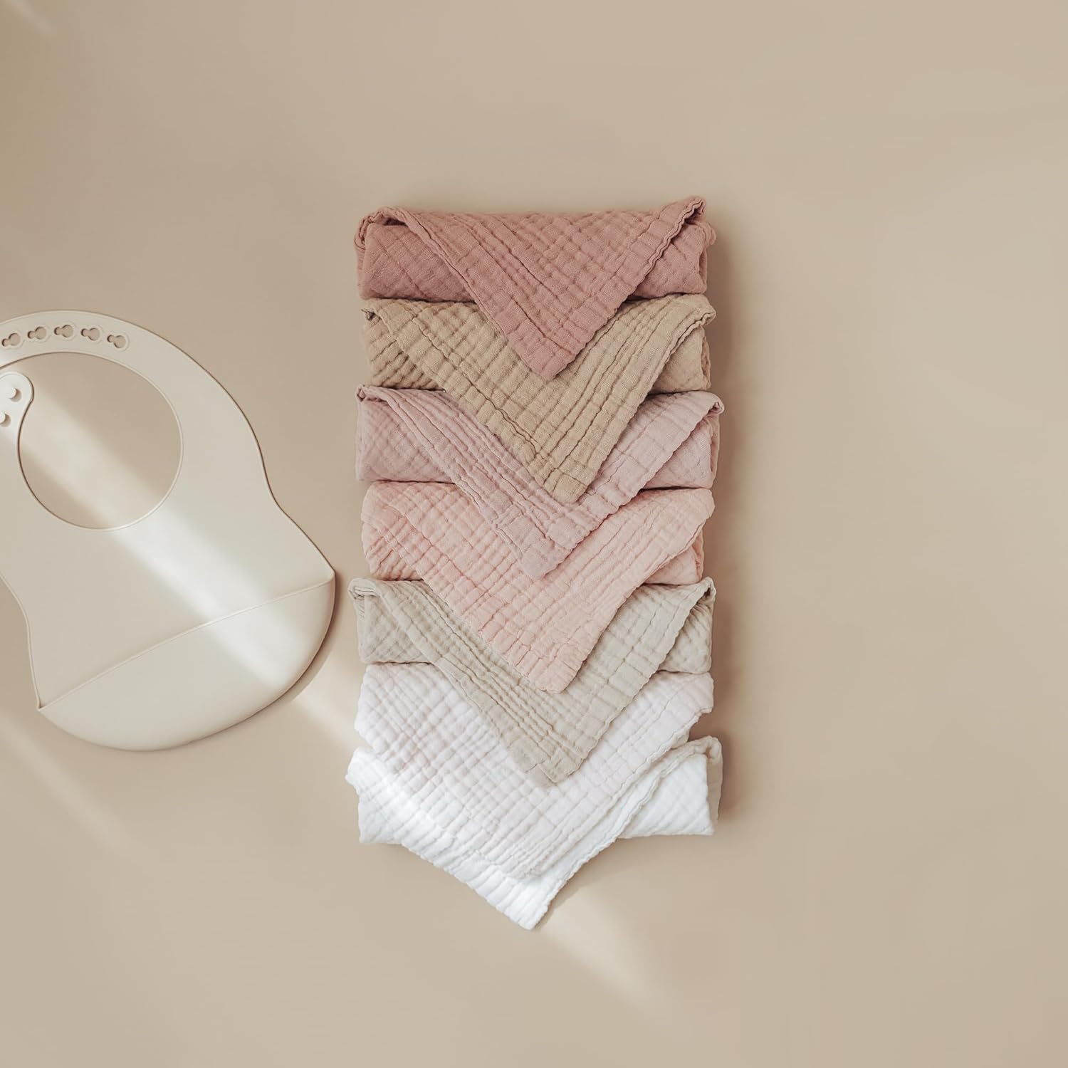 Konssy Baby Muslin Washcloths 7 Pack -100% Cotton Baby Bath Towels, Soft Baby Wash Cloths and Absorbent Burp Cloths for Newborn Kids Girls and Boys, 11×11 inches