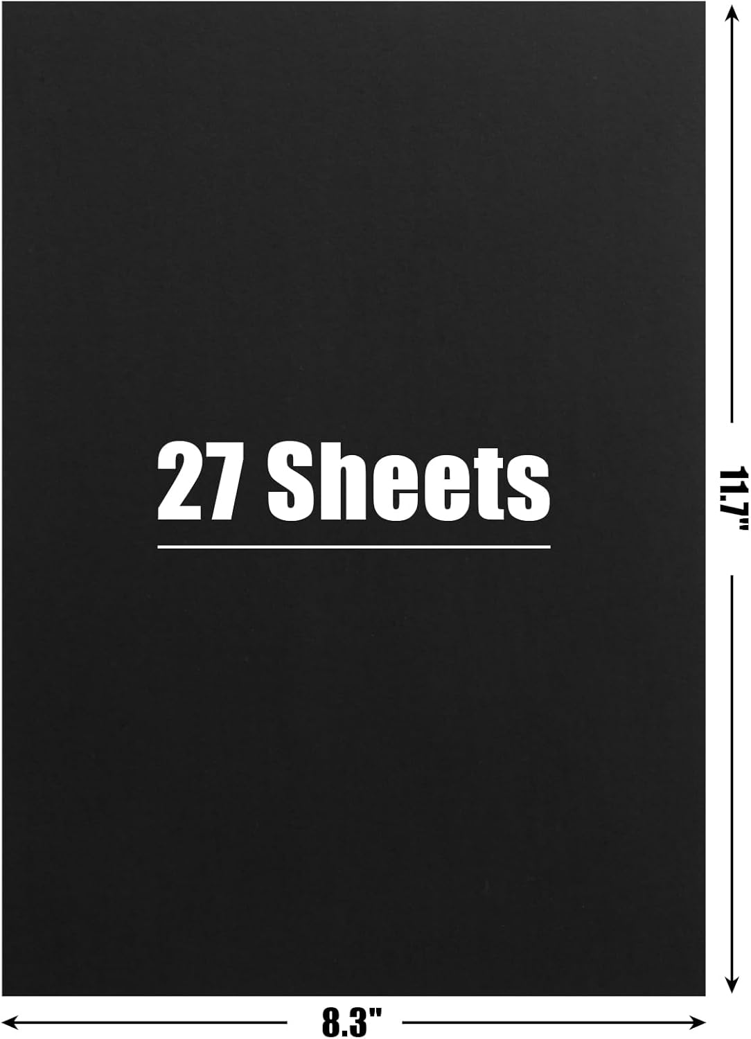 Great Value Set – This package includes 27 sheets of black cardstock paper, each measuring 8.3″ x 11.7″.