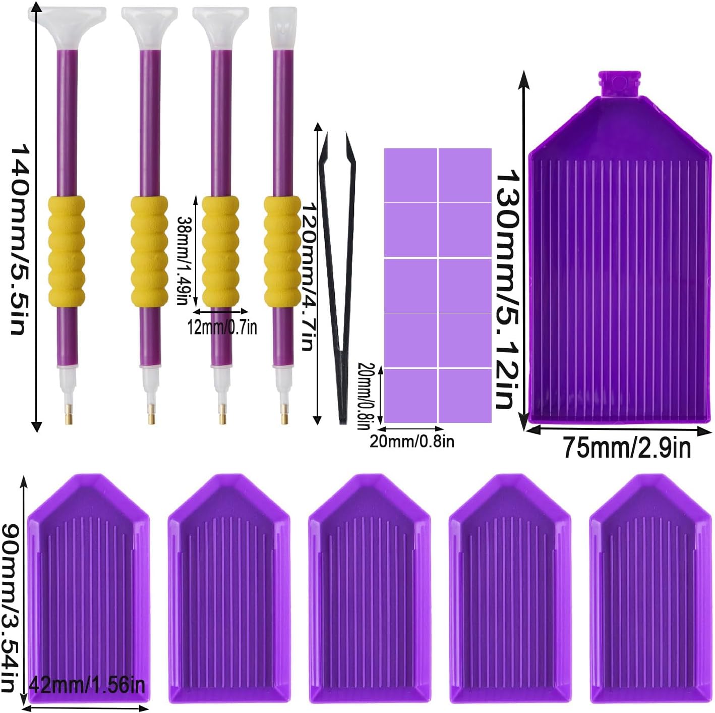 KTCLCATF DIY Diamond Painting Tools and Accessories Kits Multiple Sizes Painting Pens for Adults to Make Diamond Art Craft Tweezers Glue Diamond Correction 28 Girds Storage Box (Purple25PCS)