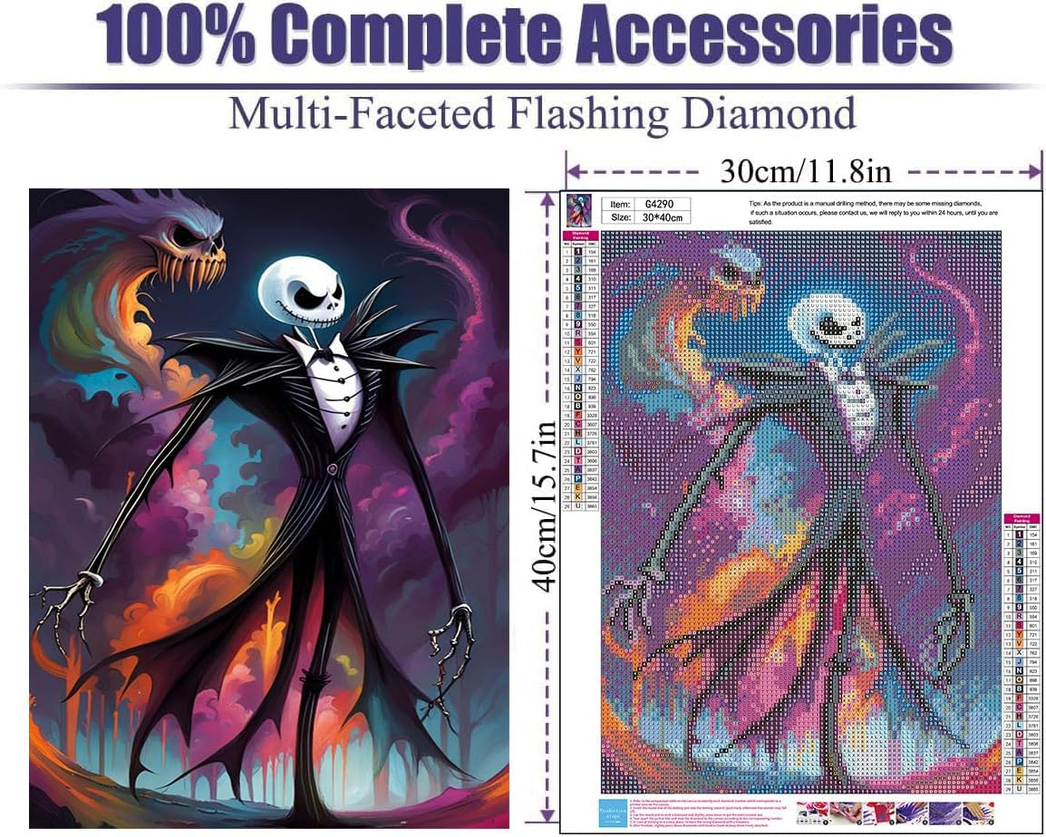 【About after-sale】: After receiving the halloween diamond art kits, check the dimond painting and accessories first. If there are less diamonds or damage, you can contact us through customer service, we will provide solutions within 24 hours.