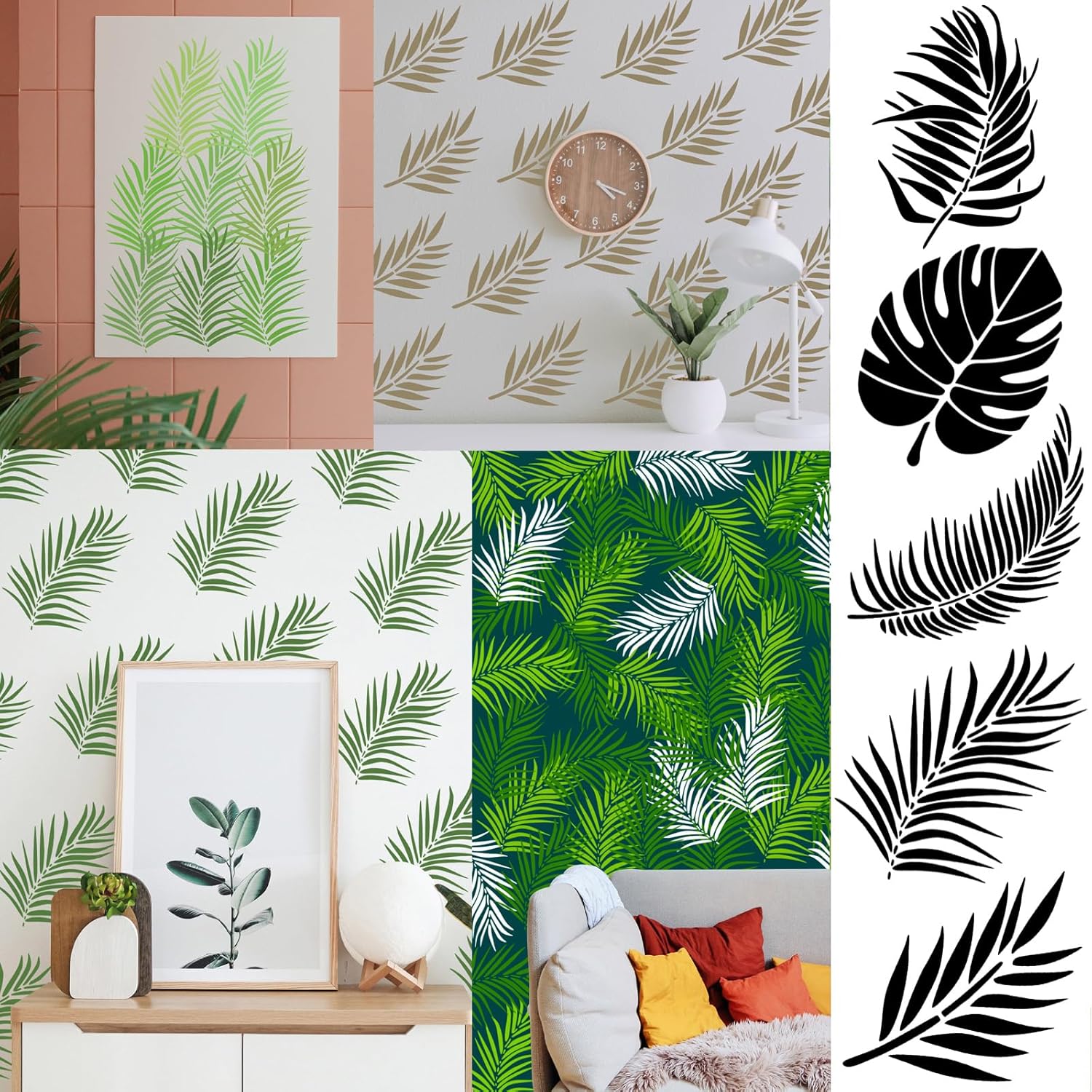 5 Pieces Mixed Tropical Jungle Leaf Stencils for Painting on Walls, Paper, Fabric, T-shirt