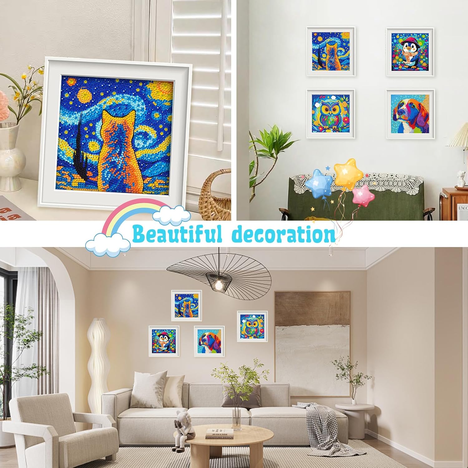 【DIAMOND ART KITS FOR KIDS】Easy and enjoyable for kids to play, stimulate their interest in painting, develop their hands-on skills and patience, improve aesthetic skills and concentration, and parents can also participate in it and enjoy the fun brought by parent-child activities.