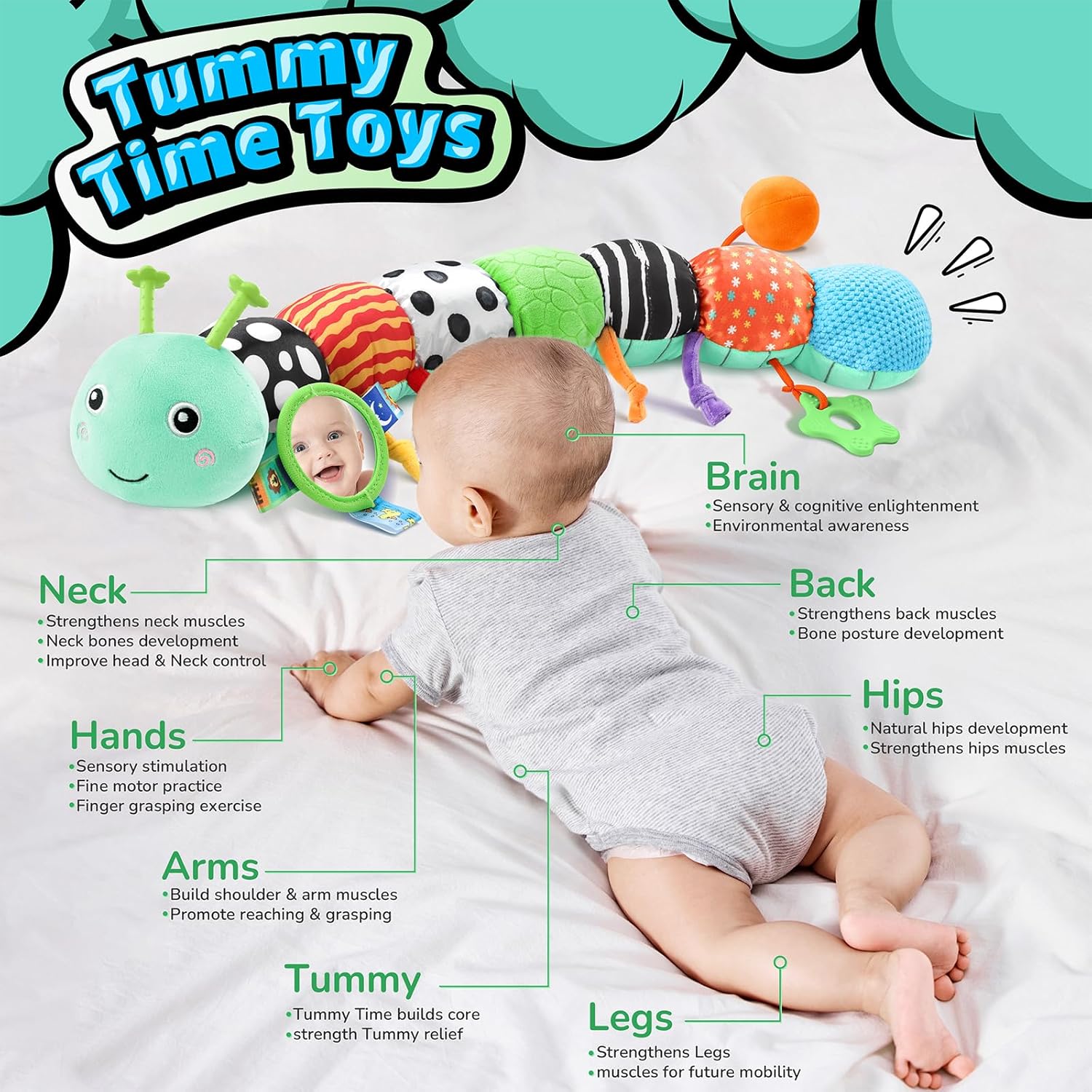 【Growth Records and Tummy Time Toys】Exploring play and sensory experiences with baby girl toys during tummy time helps babies develop muscle and bone strength.Featuring a 20-inch ruler on the caterpillar’s belly, it serves as a practical tool for parents to record their baby’s growth journey, adding joy as the baby grows.