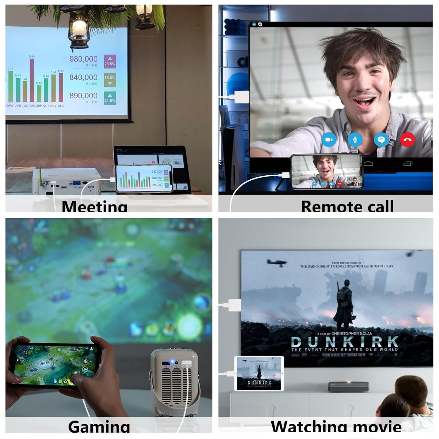 1080P (HD) Experience: Elevate your viewing experience with our Lightning to HDMI cable supporting a resolution of up to 1080P (HD). Mirror what’s displayed on your iPhone or iPad screen, including images, movies, games, apps, presentations, websites, slide shows, and more, on your HDMI-equipped TV, display, projector, or other compatible screens. Enjoy stunning visuals with crystal-clear clarity.