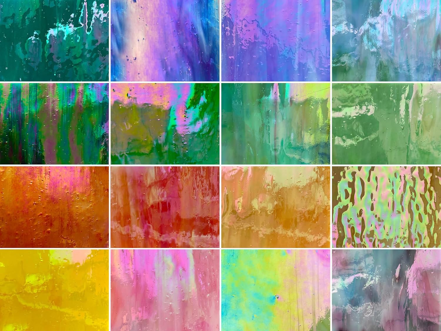 Value Pack: A total of 16 colors iridescent stained glass sheets in various colors.
