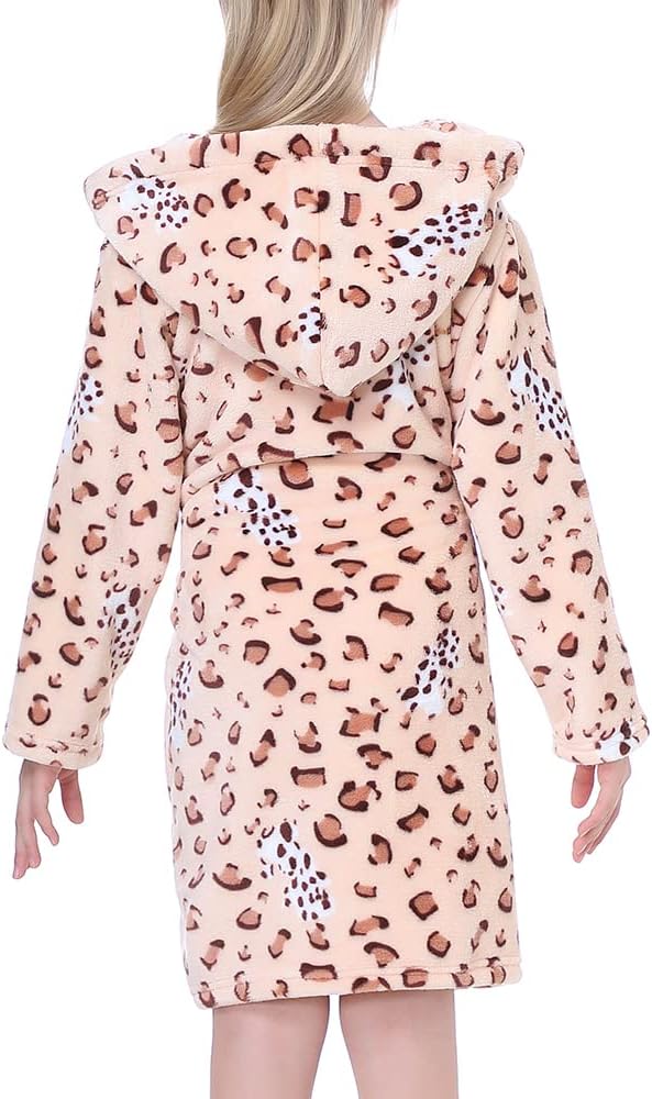 Little Big Kids Girls Flannel Hooded Bath Robe Pajama