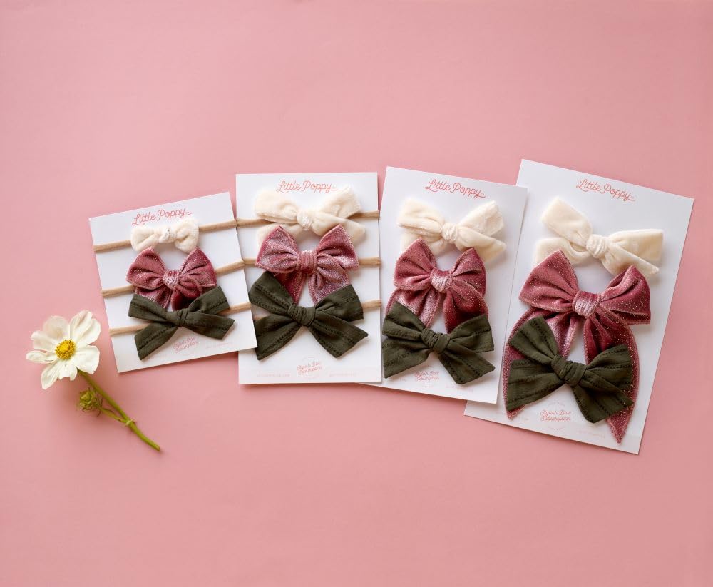 Little Poppy Co. Three Hair Bows Set – Stylish Handmade Accessories for Girls, Toddlers, and Babies | Premium Quality | Clips and Headbands