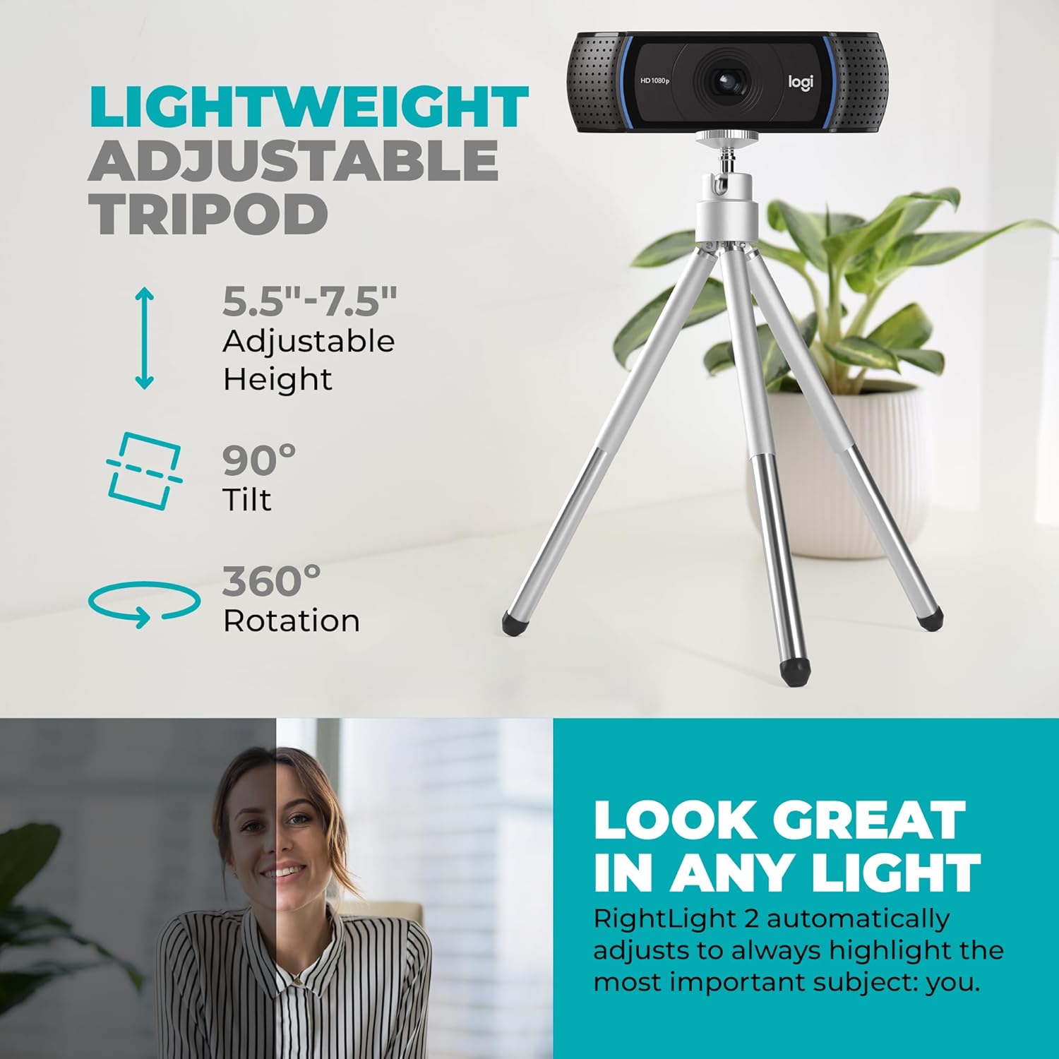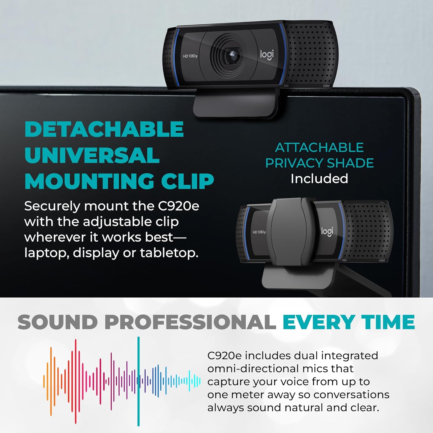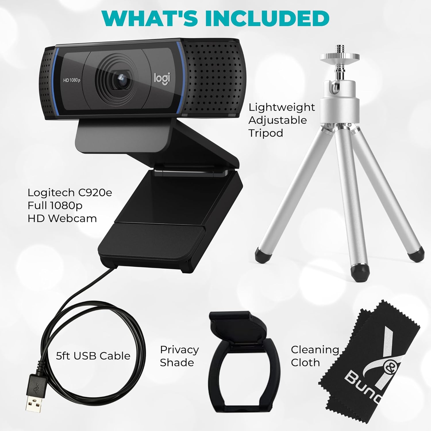Logitech C920e Webcam – HD Computer Web Camera with Microphone, Cable & Privacy Cover – Logitech Webcam 1080p for Gaming, Video Calls & Streaming – USB Camera Bundle with Tripod & Cloth by Y&R Bundles