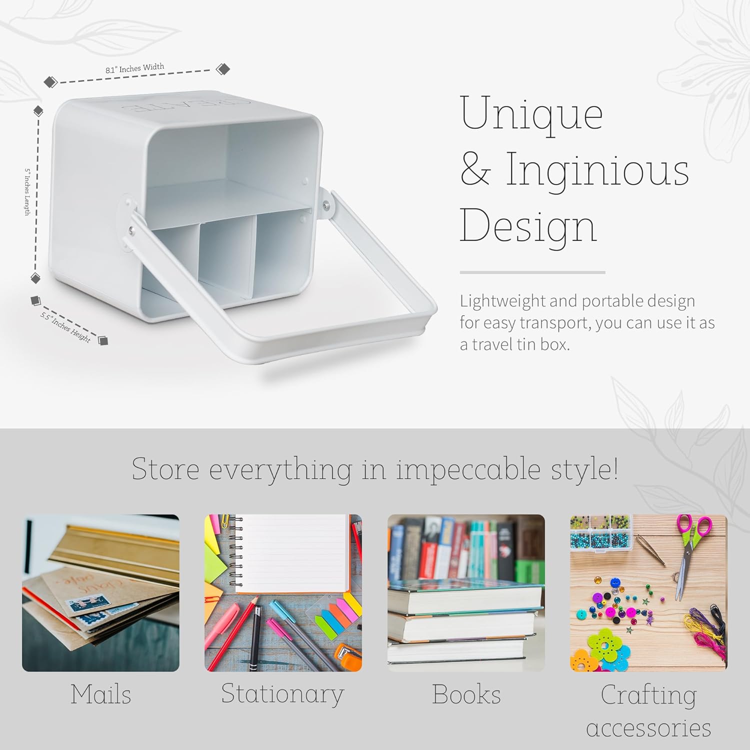 Durable Construction: This craft storage box is crafted from high-quality galvanized metal, which makes it long-lasting. The sturdy construction ensures it withstands the rigors of daily use, maintaining its pristine appearance and functionality for years.