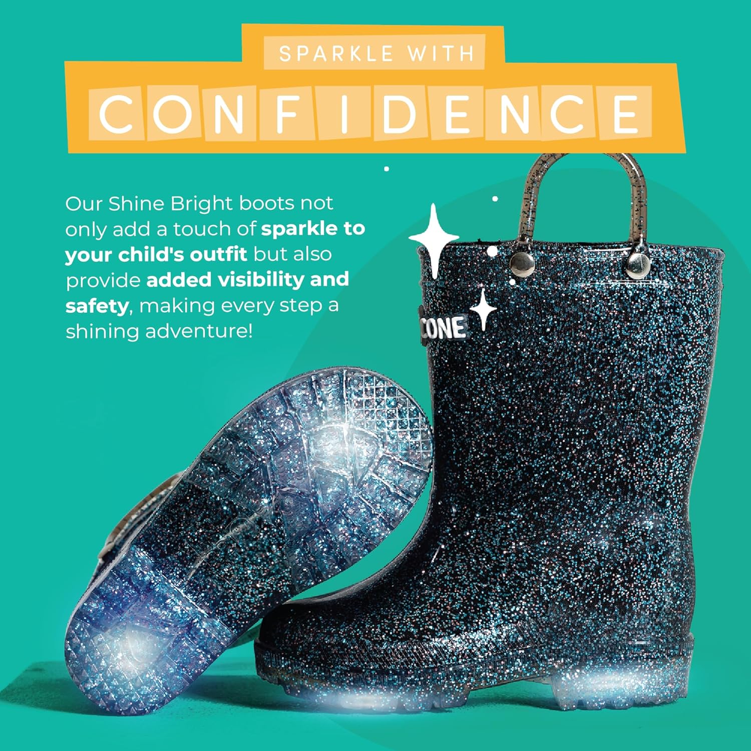 LONECONE Waterproof Light-Up Toddler Rain Boots with Easy Pull on Handles – Comfortable Shinny Kids Rain Boots for Boys and Girls – Fun & Safe Outdoor Play for All Seasons