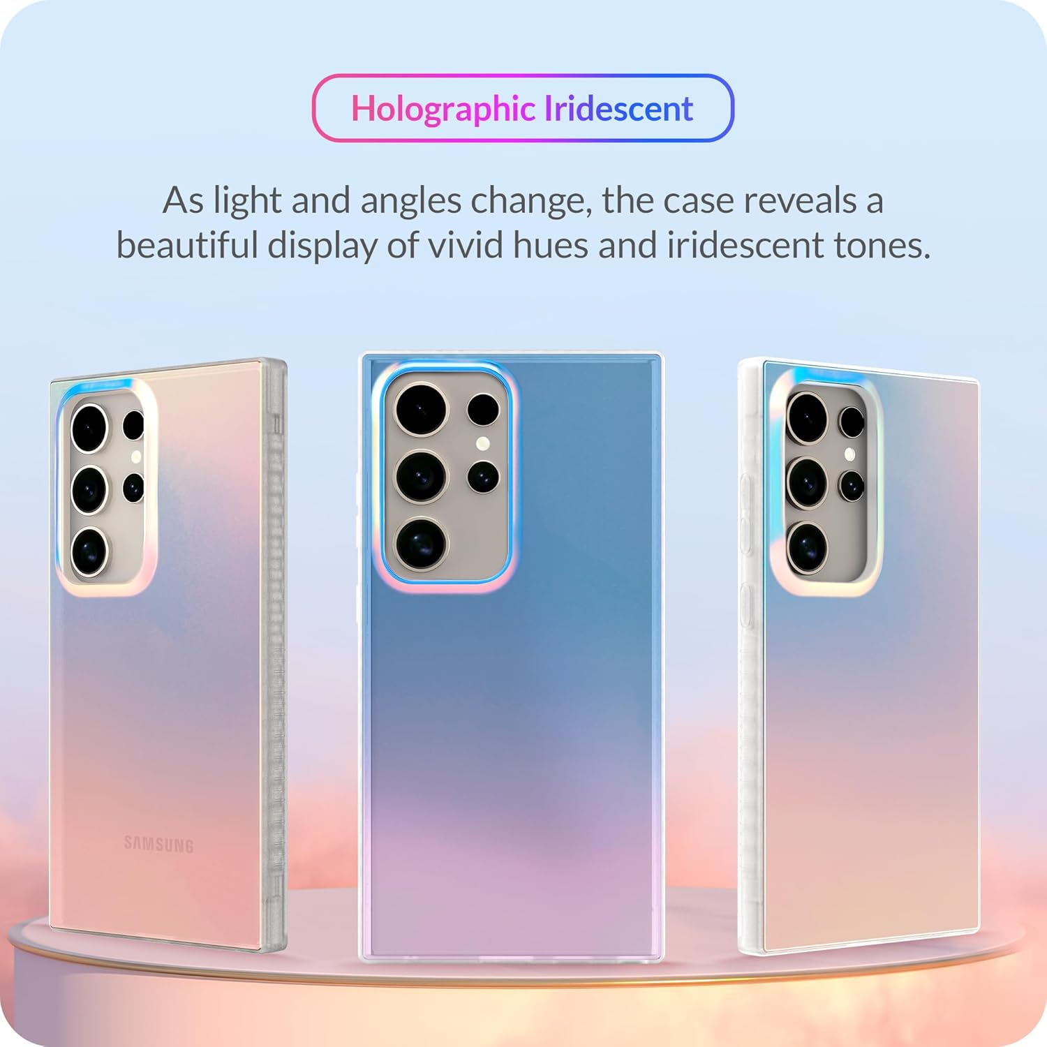 LONLI Hue – for Samsung Galaxy S24 Ultra Case – Holographic Iridescent – Shockproof Cover with Color Changing Effect | Cute and Unique for Women and Girls (2024)