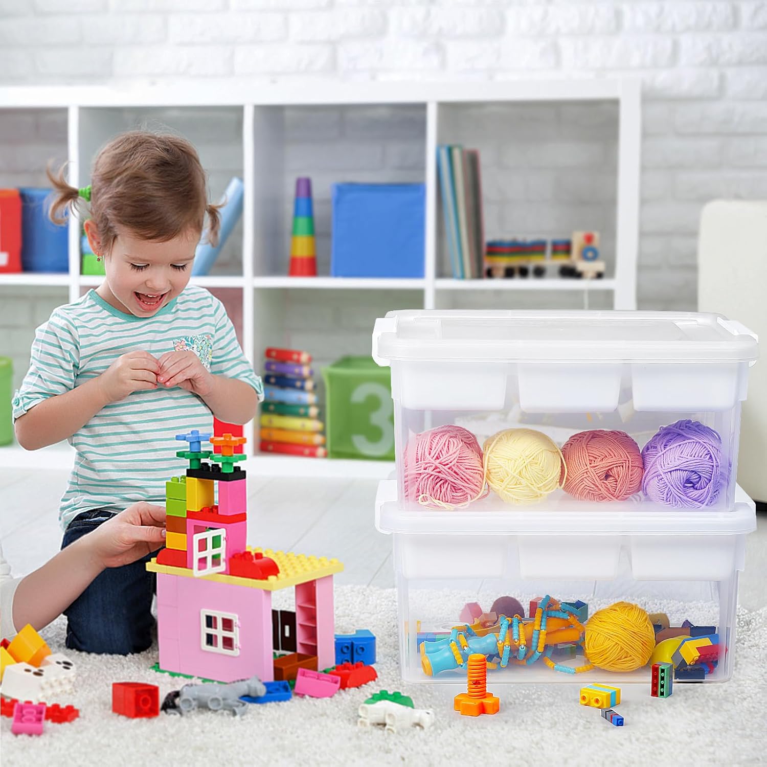 loobuu Plastic Storage Bins with Lids – 1 Pack Art Craft Supply Organizer Box with Removable Tray for Kids, 17 QT Stackable Clear Container for Toy/Sewing/Bead/Tool/Playdoh(15.94″ x11.61″x7.28″)