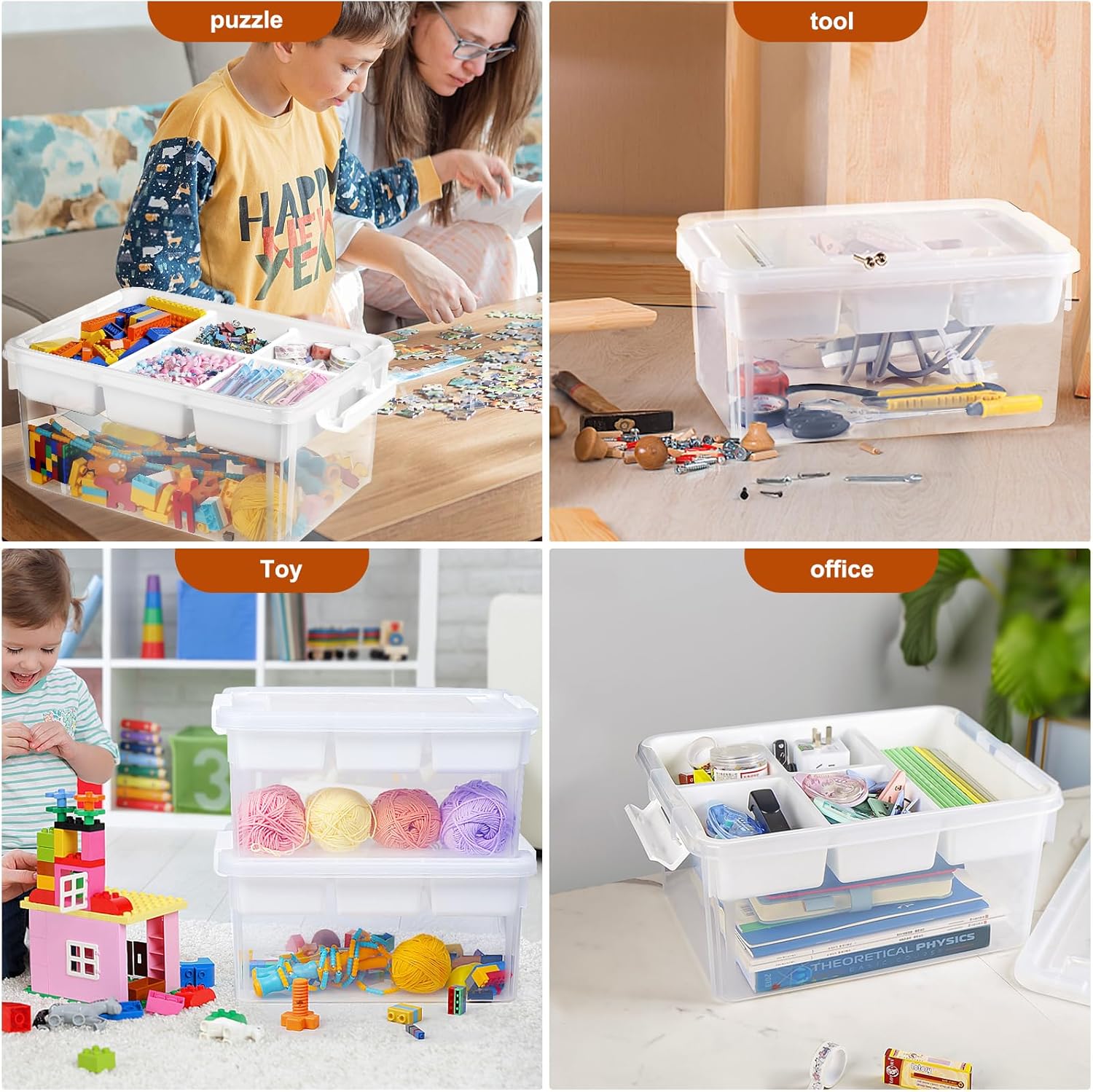 loobuu Plastic Storage Bins with Lids – 1 Pack Art Craft Supply Organizer Box with Removable Tray for Kids, 17 QT Stackable Clear Container for Toy/Sewing/Bead/Tool/Playdoh(15.94″ x11.61″x7.28″)