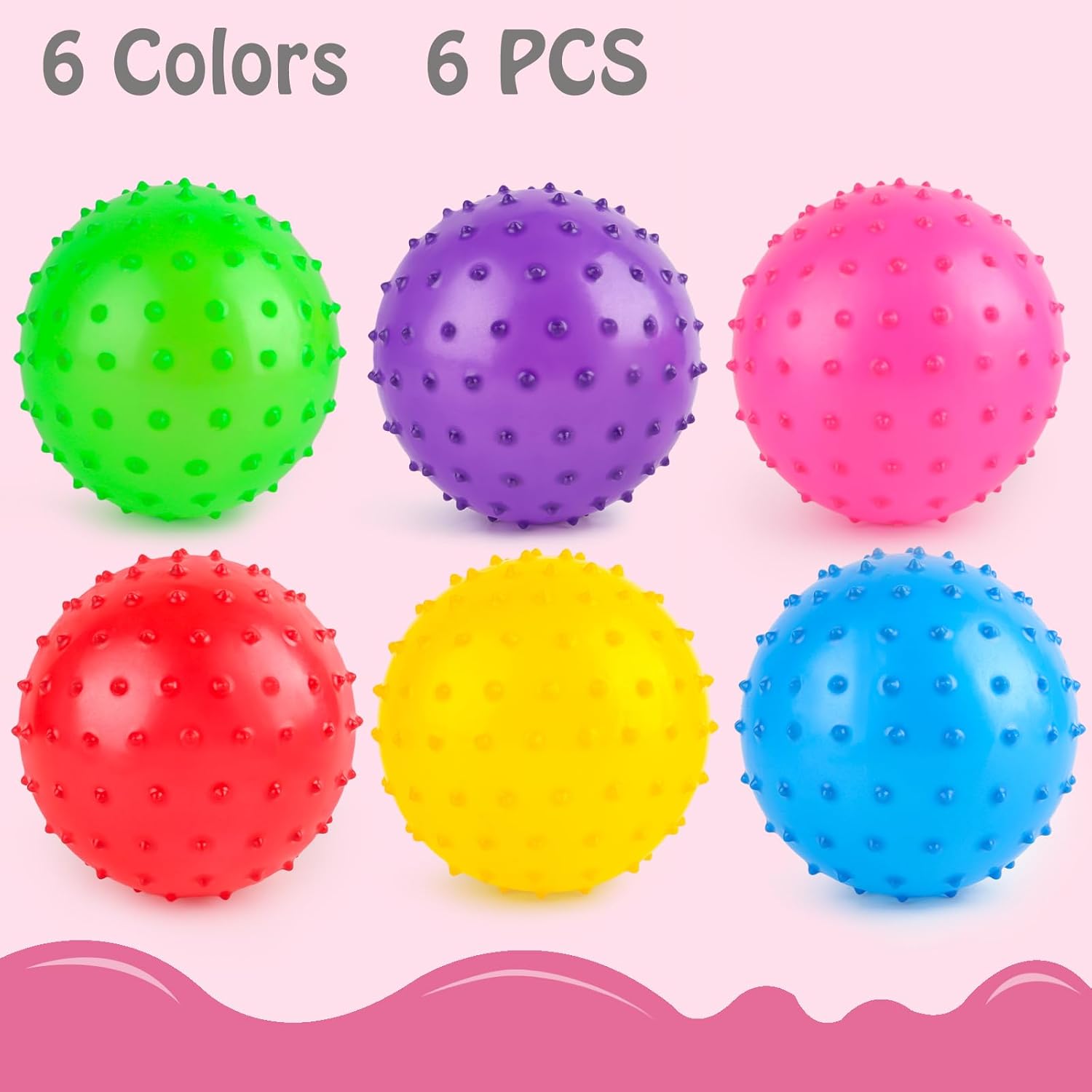 LOVEINUSA 6PCS Bounce Balls, Knobby Balls with Pump 6inch Sensory Balls Spiky Massage Balls for Babies Toddlers