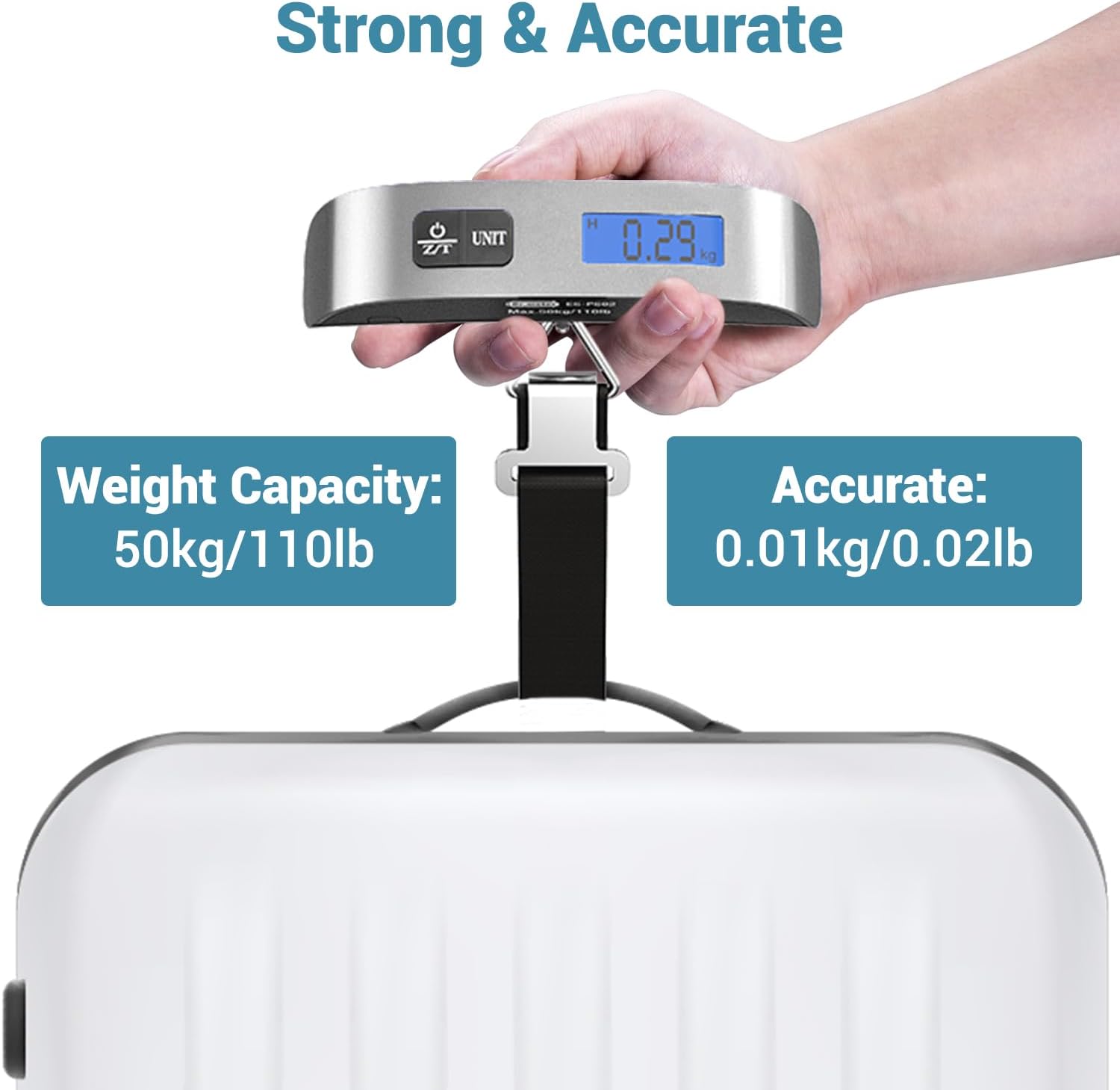 Original price was: $34.99.$29.99Current price is: $29.99.Luggage Scale, Dr.meter Travel Essentials Backlight LCD Display 110lb/50kg Luggage Weight Scale for Travel Accessories Portable Handheld Scale with Rubber Paint, Temperature Sensor, Battery Included