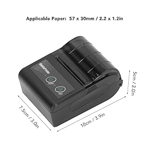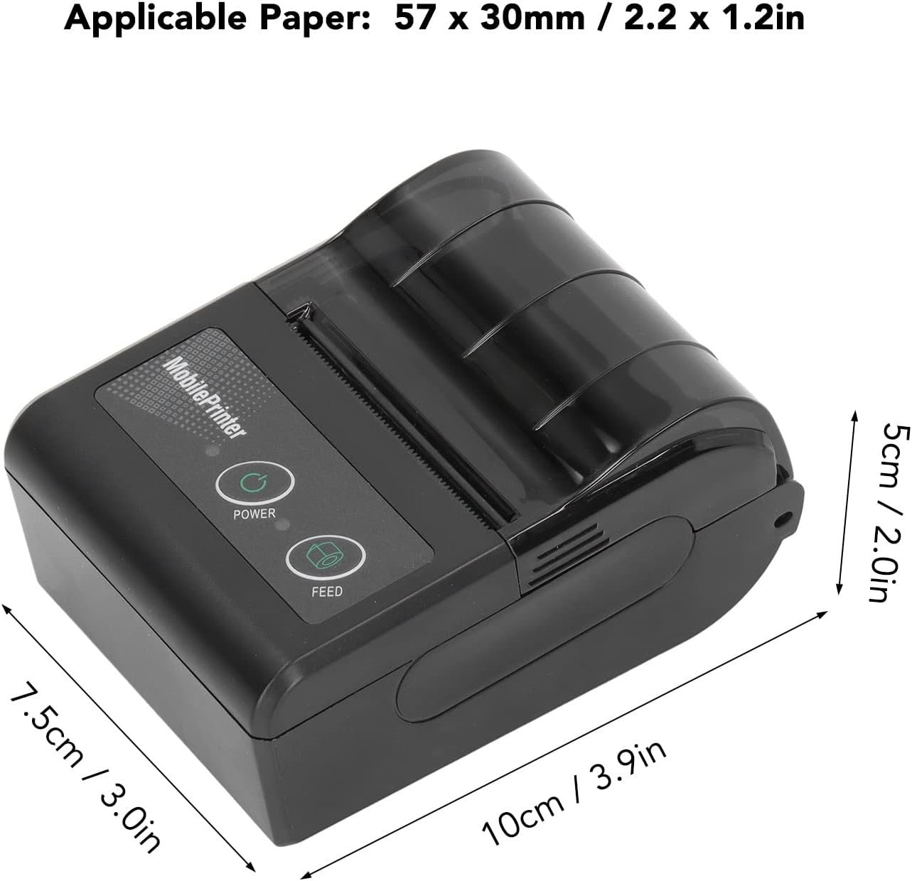 Item Type Bluetooth Receipt Printer Material ABS Battery Type Lithium Battery (Delivered with Matching Battery) Battery Capacity 1500mAh Print Resolution 200dpi Printing Speed 3 to 5 in Per Second Applicable Paper Approx. 57 x 30mm / 2.2 x 1.2in Support System for Android, for IOS, Computer Function Suitable for Taxi Order Printing, Free Receipt Printing, Food Ordering System, Office Printing