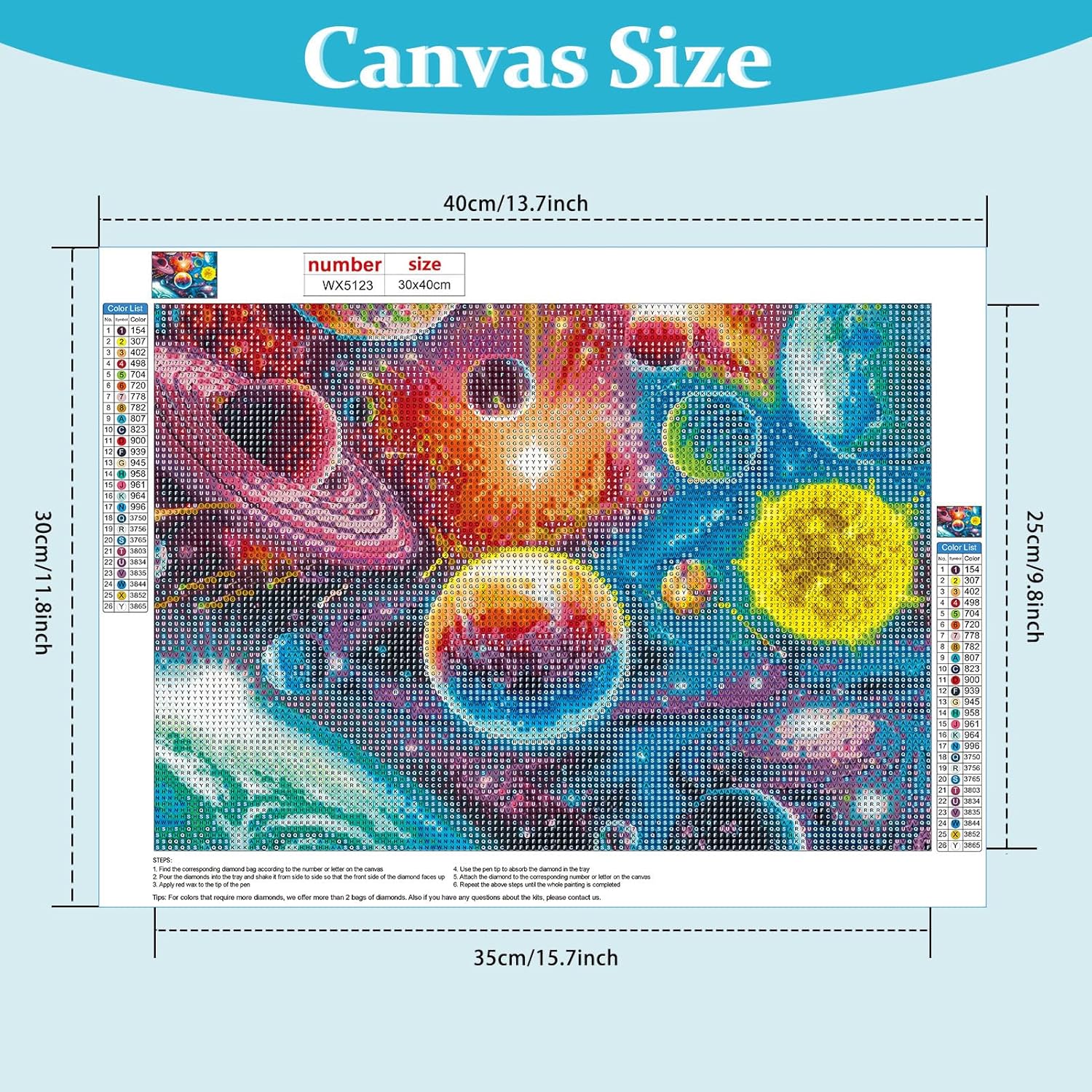 Lxmsja 5D Galactic Space Planet Diamond Art Painting, Diamond Art Painting Kits for Adults, DIY Full Drill Crystal Rhinestone Arts and Crafts Home Wall Decor 16x12inch