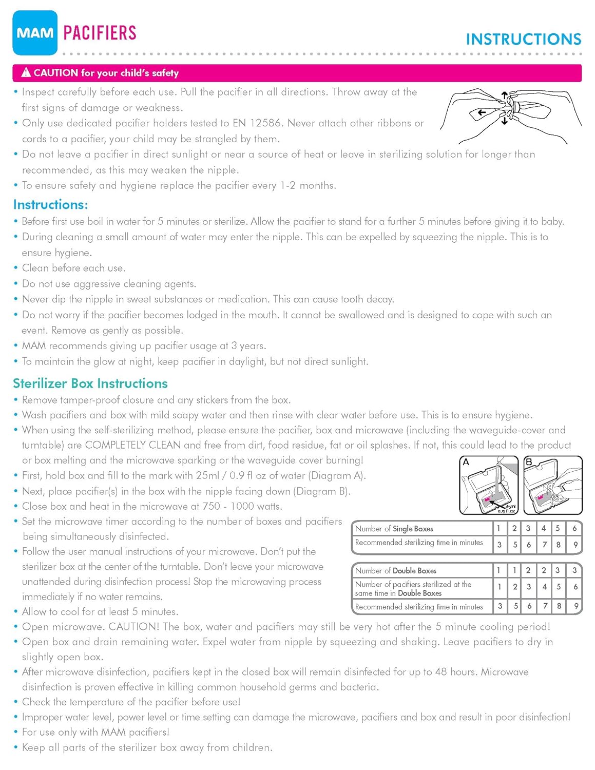 The MAM Air Day & Night Collection pacifiers for baby has a shield that is specially designed for babies 6+ months with sensitive skin. The extra wide air holes allow plenty of circulation around your baby’s mouth and even allow you to peek at their little smile. One pacifier in this pack has a special glow in the dark feature that helps keep your baby’s silicone pacifier in sight without having to turn on the light and disturb their sleep. All MAM pacifiers feature our trademarked SkinSoft silicone nipples that feel like mom and help babies transition from being breastfed to using a pacifier. In fact, market research showed that MAM nipples are easily accepted by babies of all ages, with 94% nipple acceptance among babies tested*. The textured nipple stays easily in baby’s mouth and is just the right size for your 6+ months old baby so their growing teeth, palate, and jaw will be safe. Additionally, the symmetrical orthodontic nipple shape means you won’t have to worry about uneven pressure or fussing to turn the pacifier “right side up”. *Market research 2010-2020, tested with 1,572 babies