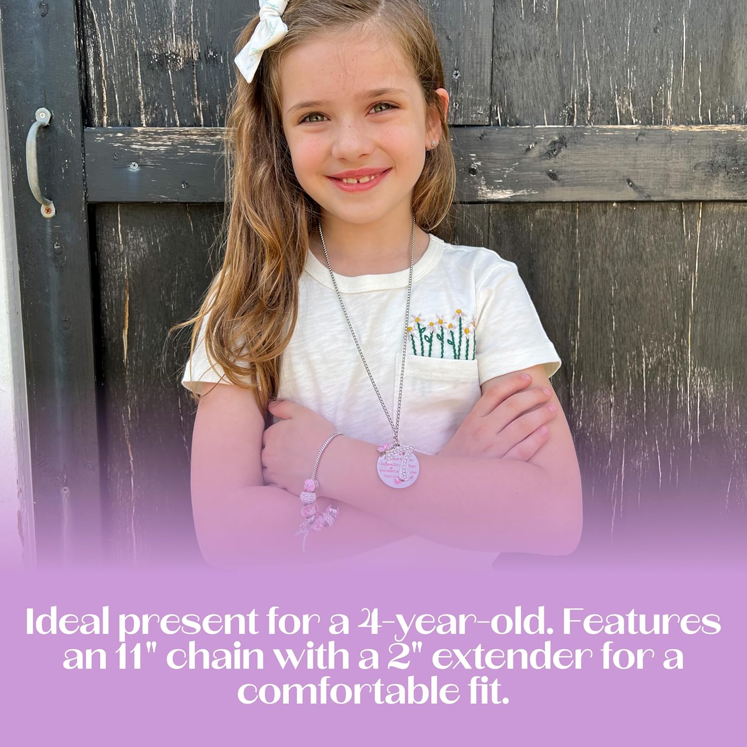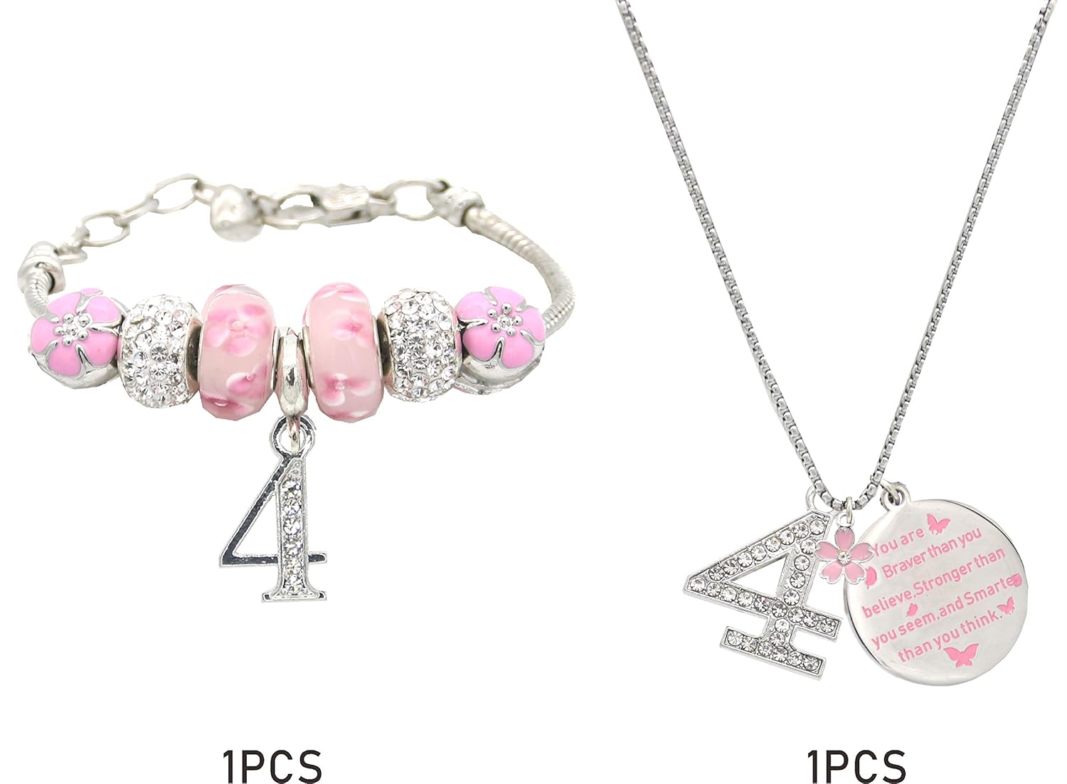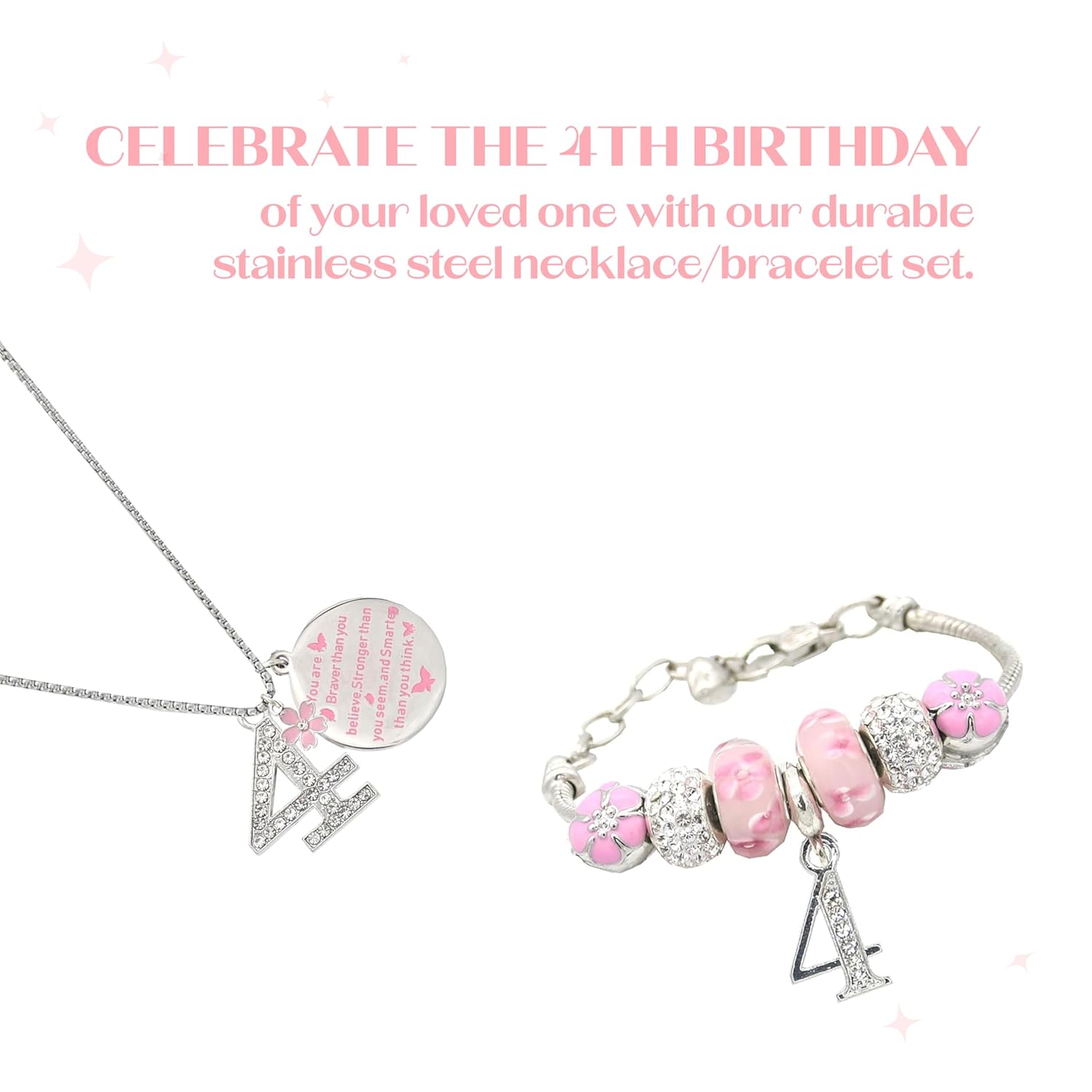 MEANT2TOBE 4th Birthday Gifts for Girls, 4th Birthday Charm Bracelet, 4th Birthday NeckLace, 4th Birthday Party Supplies, 4th Birthday Decorations for Girls, 4 Years Old Birthday Jewelry for Girls