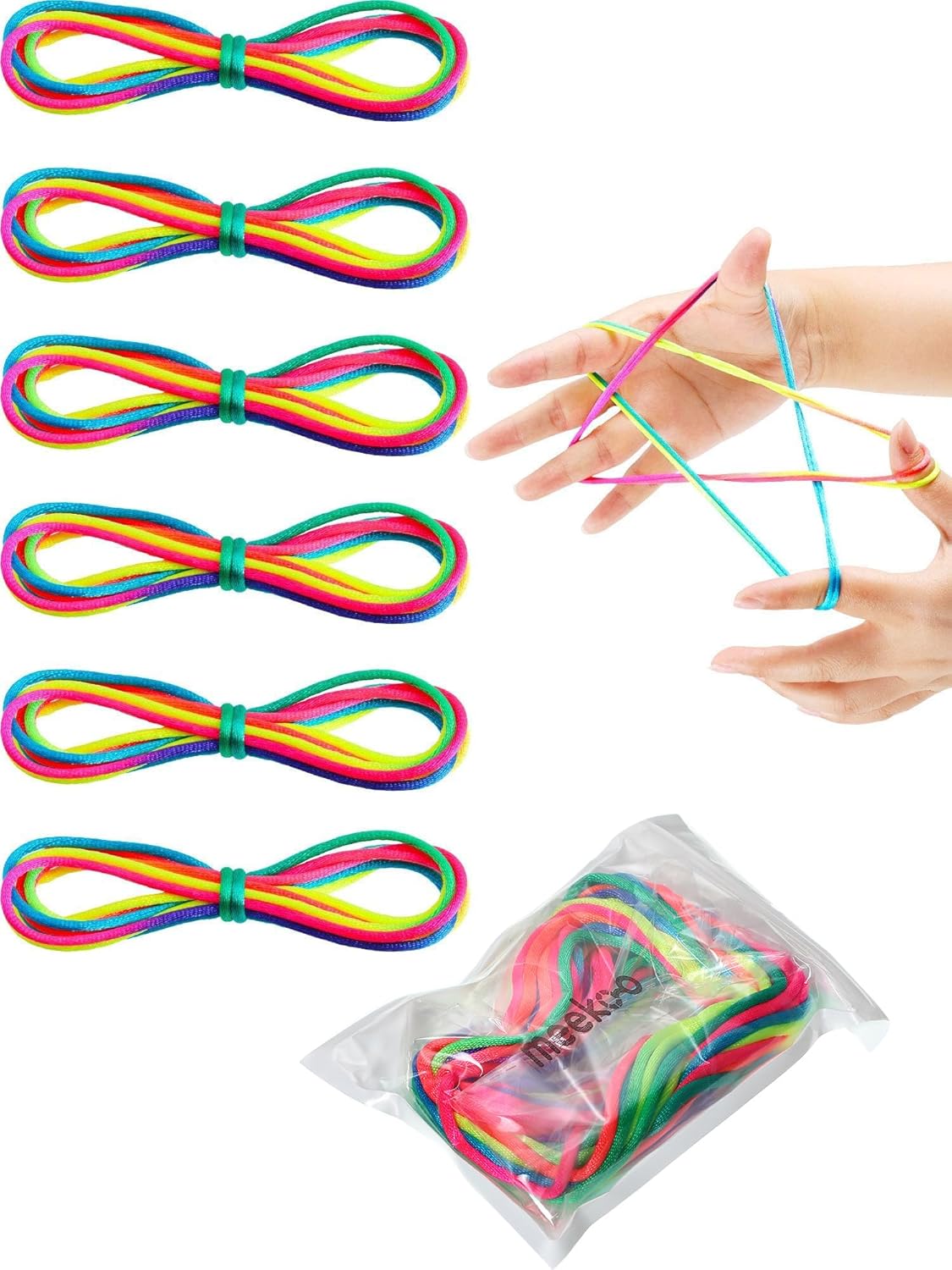 meekoo 6 Pieces Cats Cradle String String Hand Game Finger String Toy Supplies, 165 cm Length, Rainbow Color