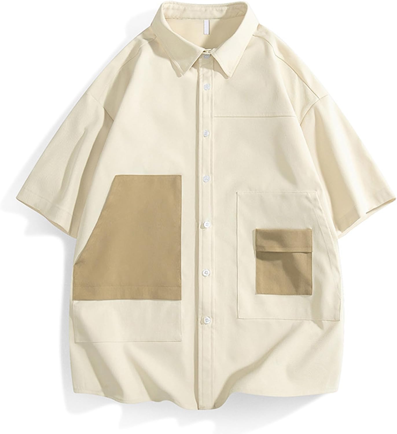 Mens Summer Loose Youth Short Sleeve Pocket Shirt Men plus Top