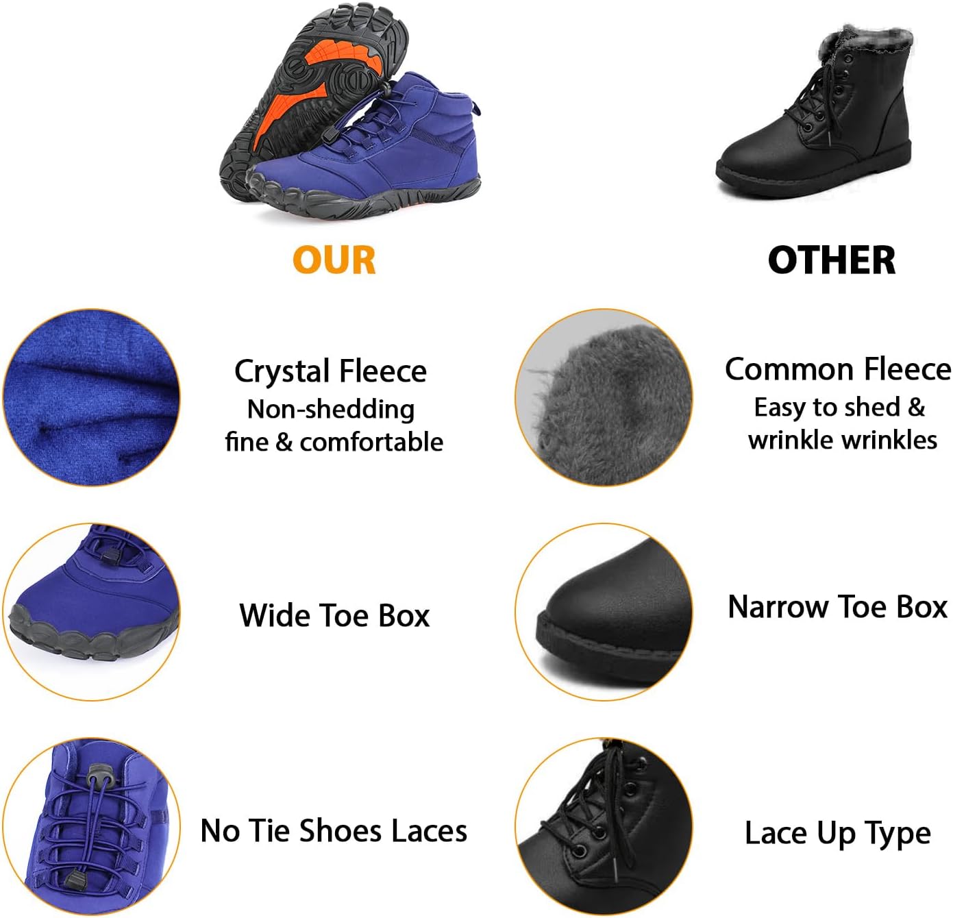 Be the first to review “Men’s Warm Winter Snow Boots Wide Toe Box Barefoot Boots Outdoor Water Resistant Ankle Booties”
