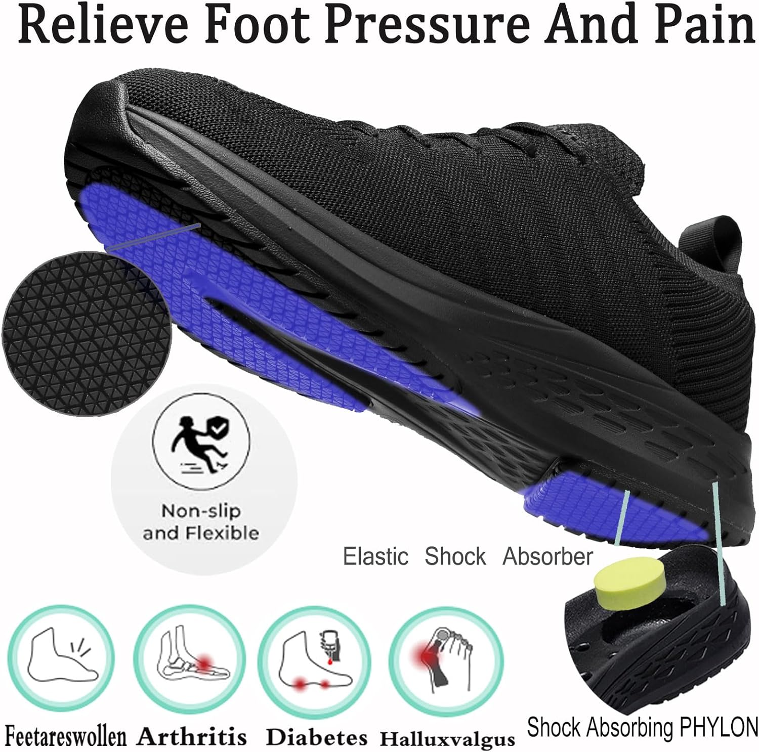 Men’s Wide Toe Walking Shoes Sneakers Men’s Wide Toe Box Running Shoes with Arch Support Suitable for Plantar Fasciitis Relieve Foot Pain Men’s Diabetic Shoes 7-13