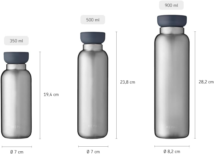 Always a hot or cold drink to take with you, thanks to the insulated bottle Ellipse. Ideal for long a long drive. For when time passes by way too slowly, a great sing along session and an ice cold drink at your side will no doubt reenergize you! Fill the Mepal thermo bottle with nice refreshing (sparkling) water and your drink will remain (ice)cold until the very last drop. The insulated bottle Ellipse 500 ml keeps your drink hot for up to 12 hours and cold for up to 24 hours. The outside of the thermos drinking bottle will of course remain cool and dry, no matter how hot or cold its contents is! Tip: Rinse the insulated to go bottle with really hot or cold water before use, for an optimal effect! In order for you to enjoy your product as long as possible, we advise you to hand wash the coloured bottles. The plastic parts of the caps are dishwasher safe.