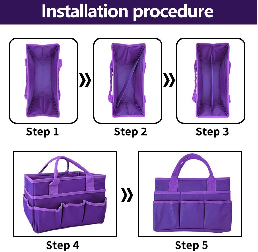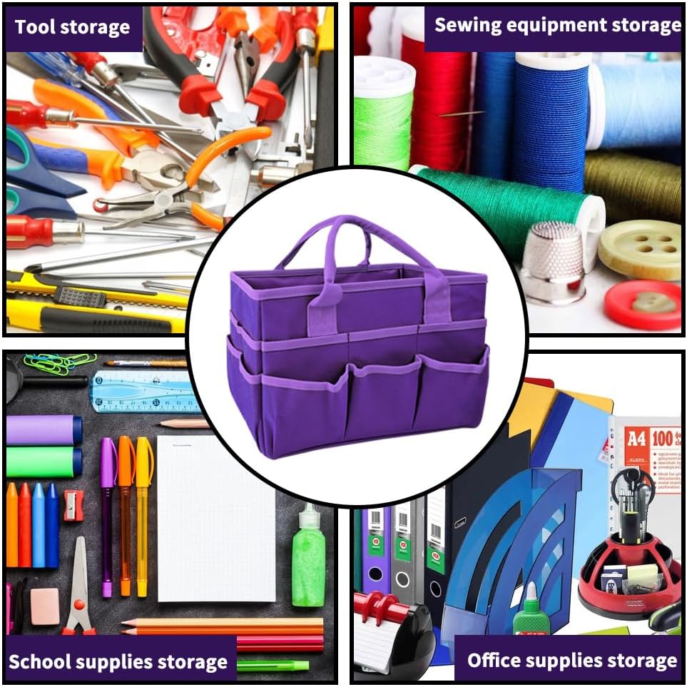 Mewise Teacher Handle Tote Bag Organizer,Tote Bag Organization for Crafts,Art,Paper,Books,School,Sewing,Travel with Handles,Ofiice Supplies Storage (Purple)
