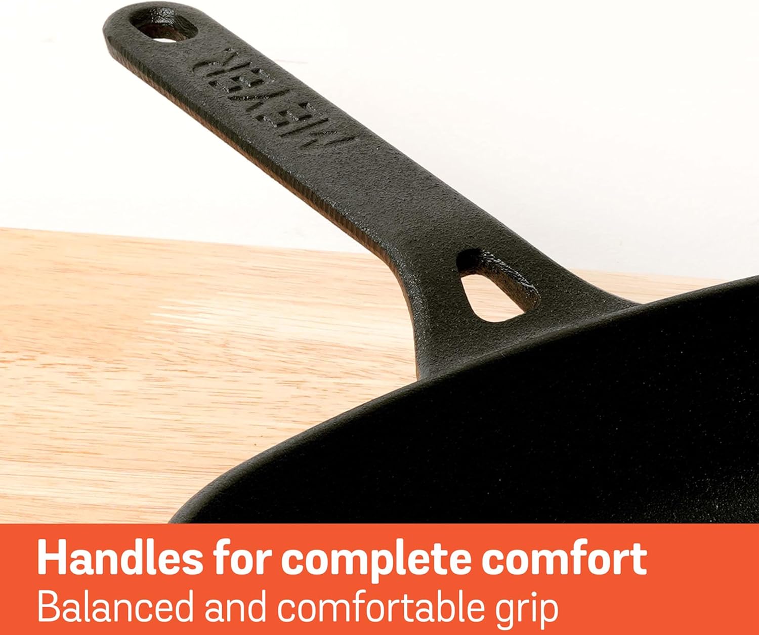 Hassle Free Lifetime Warranty Totally Toxin-Free No Enamel, No Chemical Coating On Inner Or Outer Surface. Pre-Seasoned With 1% Vegetable Oil 3Taller & Thicker Grill Ridges For Better Sear, Char Marks And Smoky Taste. Adds A Strong Authentic Indian Flavour To Your Preparations. Uni-Body One-Piece†Design With Easy Pouring Lips Free Of Any Screws Or Weld Joints. Saves Cooking Gas High-Quality Cast Material Heats Quickly, Evenly & Retains Heat Longer Suitable For All Cooktops Including Induction. Comes With A Canvas Grip For Easy Handling.